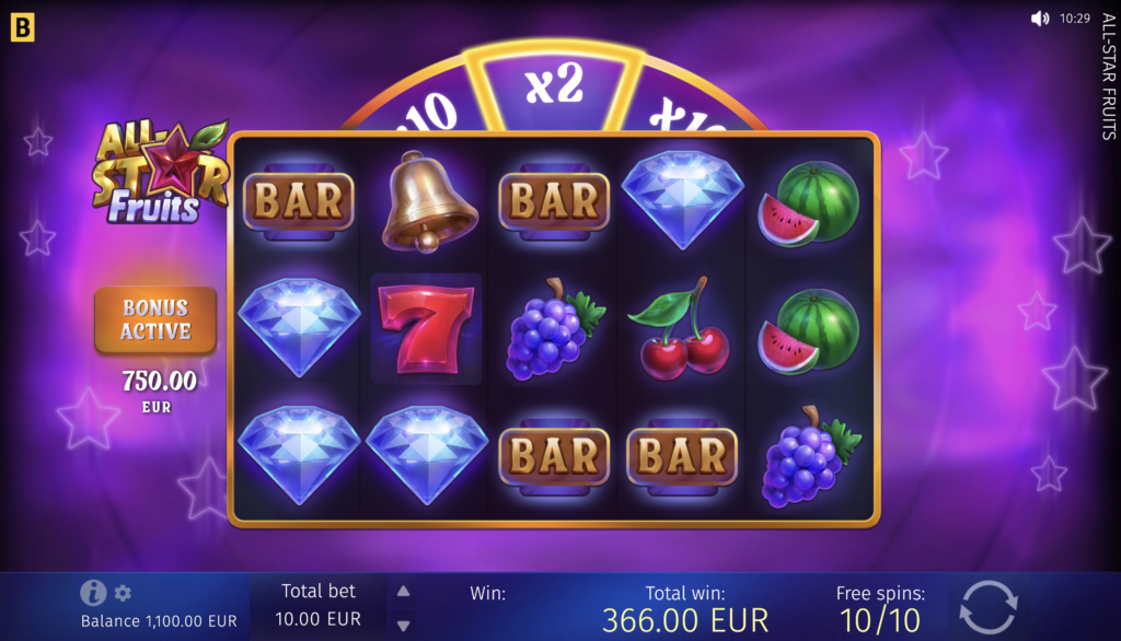 ¡Juega a una tragaperras de frutas clásica, agradable y fácil de entender, con muchas sorpresas agradables! Lleva un registro de los multiplicadores de estrellas fugaces en el Scatter Tracker del juego principal, que aumenta la emoción, y consigue premios adicionales en las tiradas gratis clásicas y mágicas con una rueda multiplicadora.