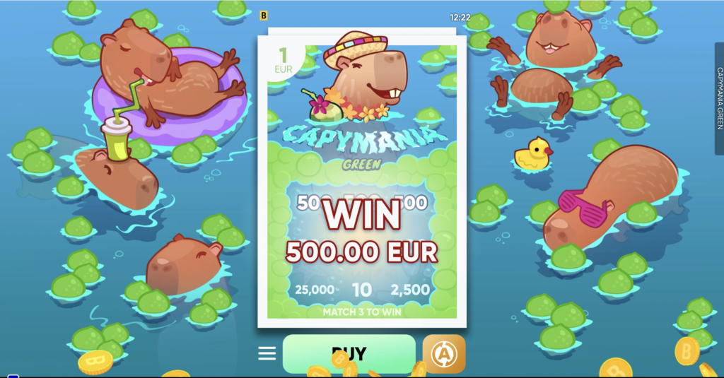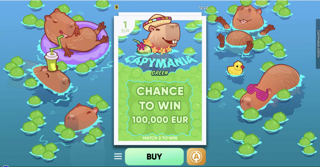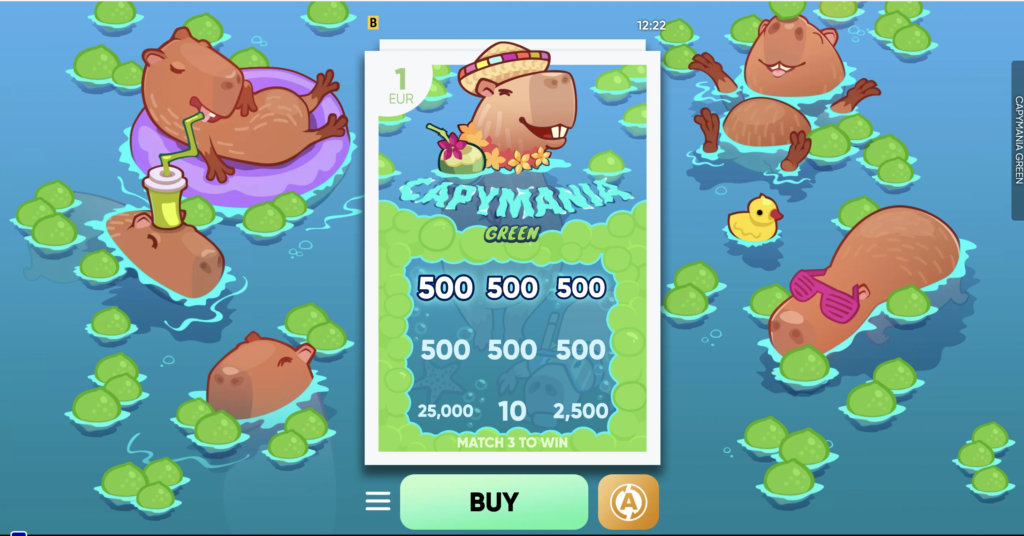 BGaming presenta tres títulos rasca y gana al instante agrupados en un solo set: Capymania Yellow, Capymania Green y Capymania Orange, cada uno con giros en las imágenes y los valores de las apuestas.