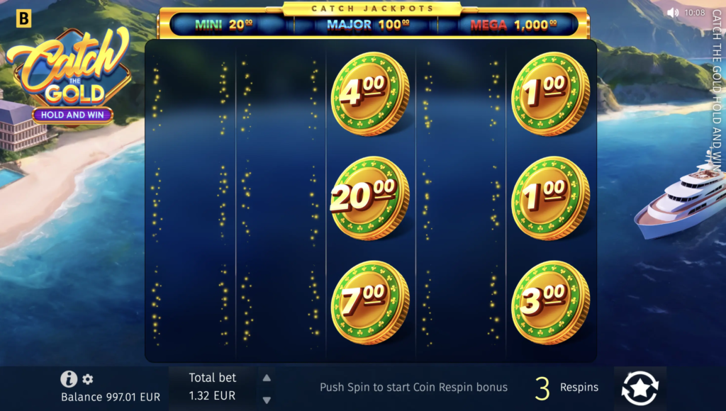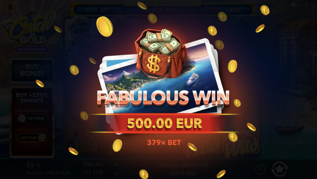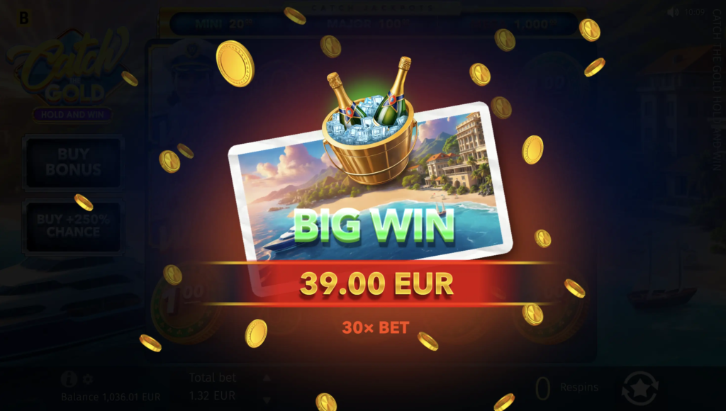 ¿Cuál es la mayor ganancia disponible en Catch the Gold Hold and Win?