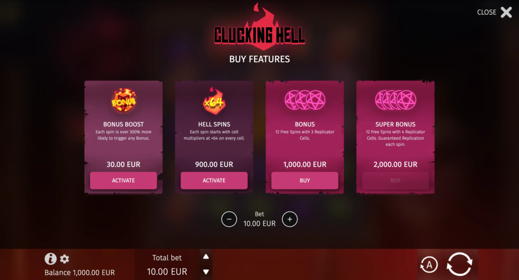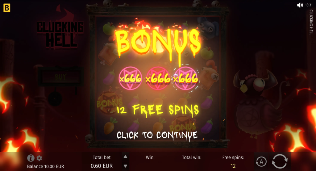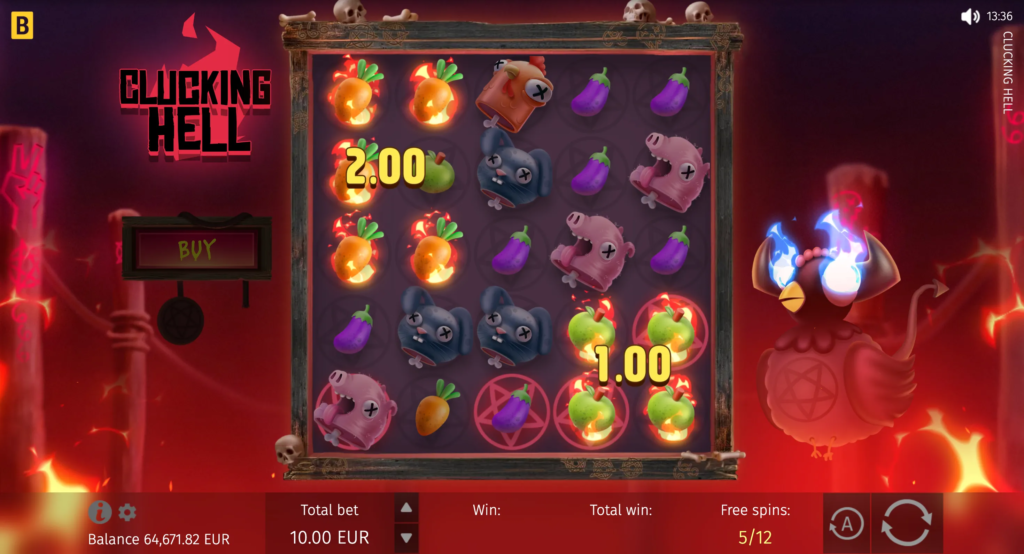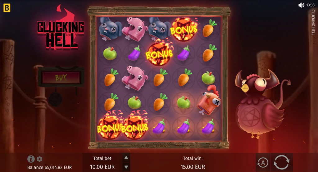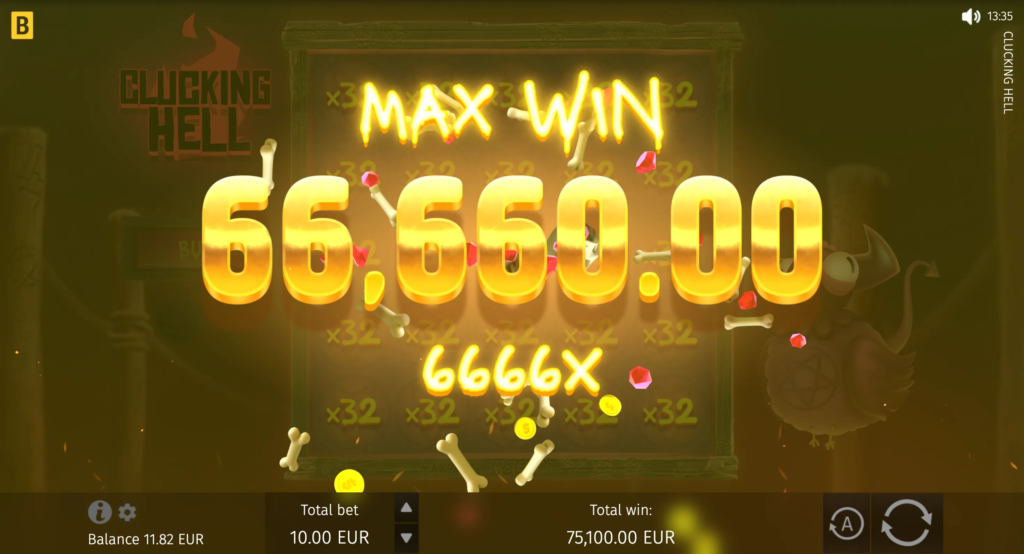 La tragaperras Clucking Hell ofrece un multiplicador máximo de x6.666 de tu apuesta. El potencial de ganancias en forma de bote puede ser muy gratificante, lo que hace que esta diabólica tragaperras resulte atractiva para los jugadores que buscan grandes ganancias.