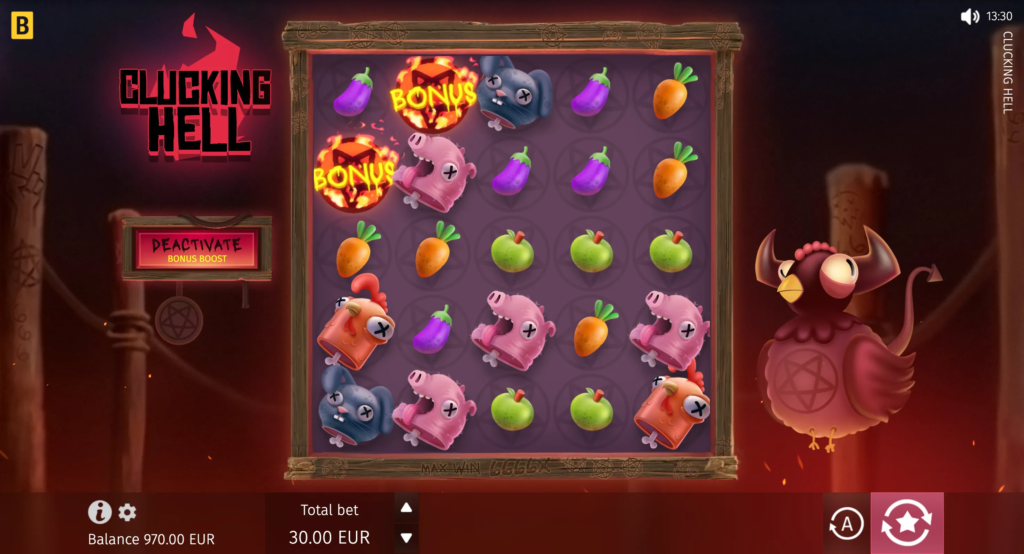 Simpáticos animales de granja convertidos en zombis. Una gallina poseída, realizando rituales que atraen multiplicadores de hasta x666 e invocan la última ofrenda de x6.666. “¿Qué demonios está pasando aquí?”, te preguntarás. El caos del corral continuará hagas lo que hagas… ¡A menos que mires el lado positivo y lo aproveches! ¡Utiliza la amplia selección de diabluras de la tragaperras para niveles infernales de diversión!