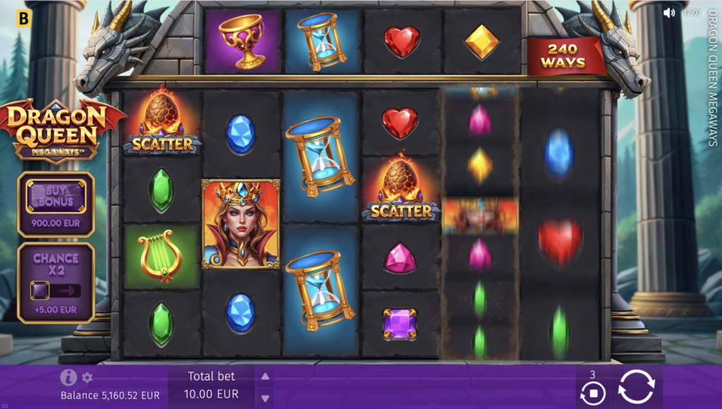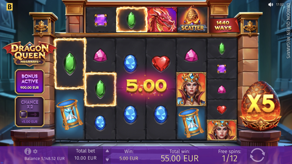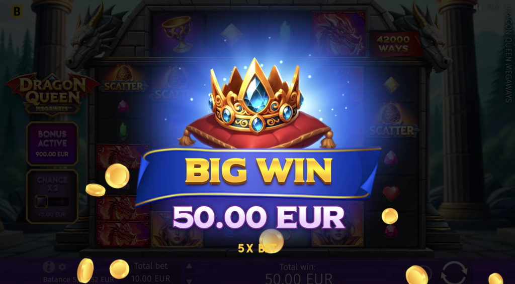 Haz girar con orgullo los carretes de batalla de MEGAWAYS™ y acepta la llamada de ayuda de la Reina Dragón. Consigue victorias potenciadas por comodines de 2 coronas y siente cómo el calor de la acción real se intensifica aún más en la ronda de tiradas gratis, con 5 a 15 tiradas gratis generadas de forma aleatoria que ofrecen un multiplicador de x2 a 25 por todas las ganancias de las partidas de bonificación. ¡Defiende el honor de Su Majestad y cosecha sus generosas recompensas!