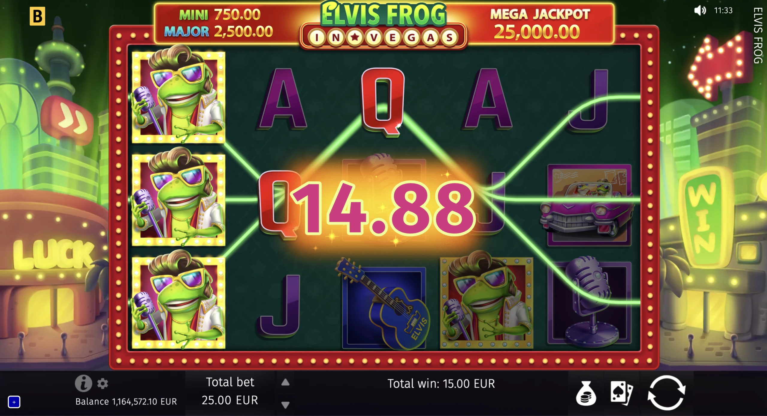 ¿Cuál es la mayor victoria disponible en Elvis Frog in Vegas?