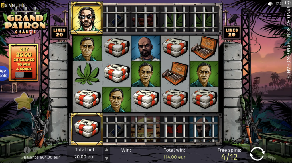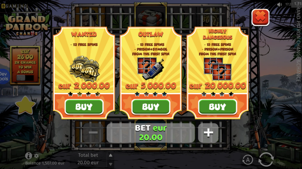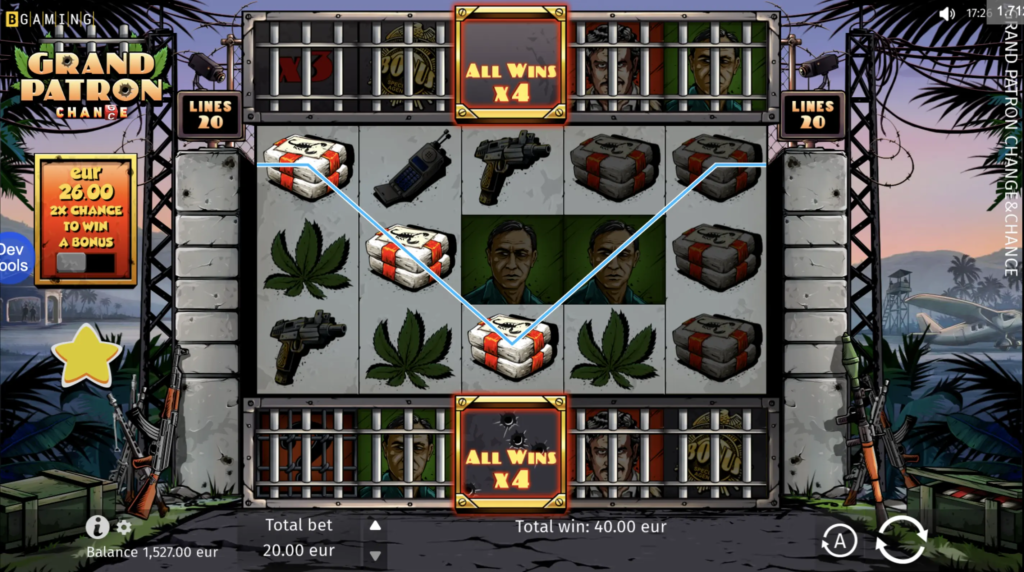 ¡Un imperio criminal pende de los carros adicionales de esta tragaperras de vídeo! En el juego principal, solo un símbolo por tirada en cada carrete extra da tiempo de yarda, pero esto provoca mucha expectación en los principales carretes: los símbolos pueden aparecer, convertirse en comodines, explotar, multiplicarse e incluso ser arrestados. La acción se intensifica en 3 variantes de tiradas gratis, ya que los carretes adicionales van abriendo sus casillas una por una.
