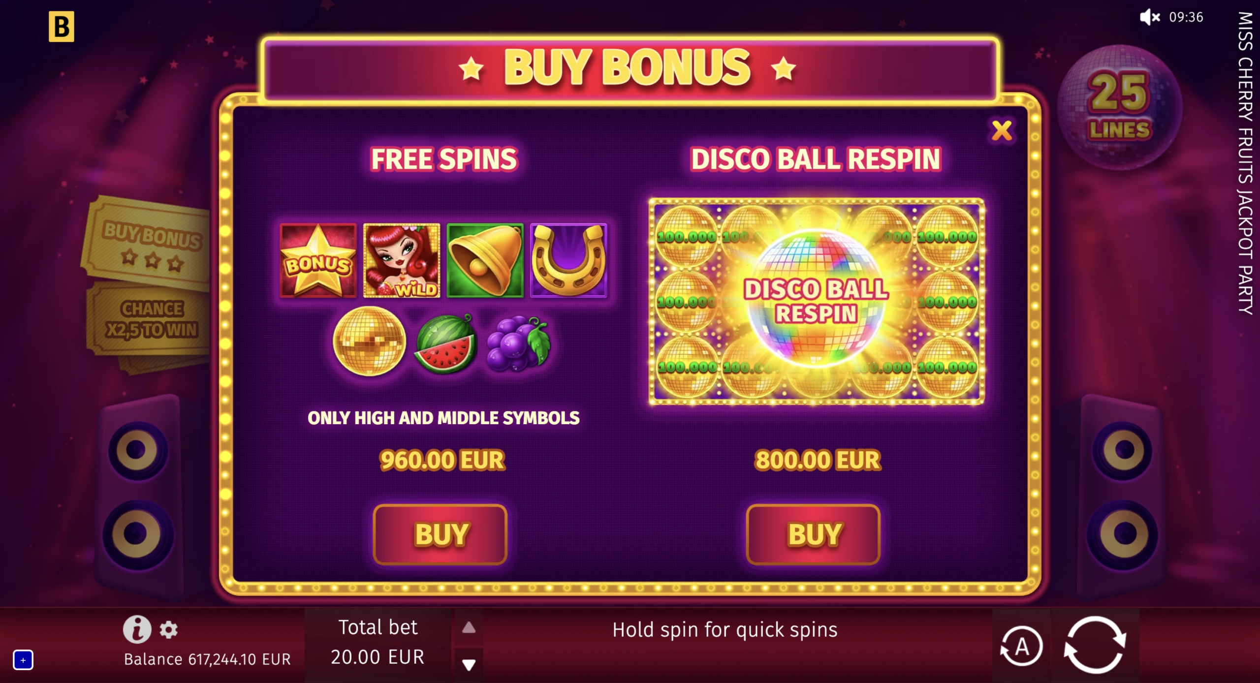 ¿Cuál es la mayor ganancia disponible en Miss Cherry Fruits Jackpot Party?