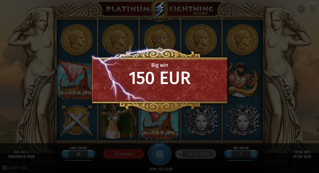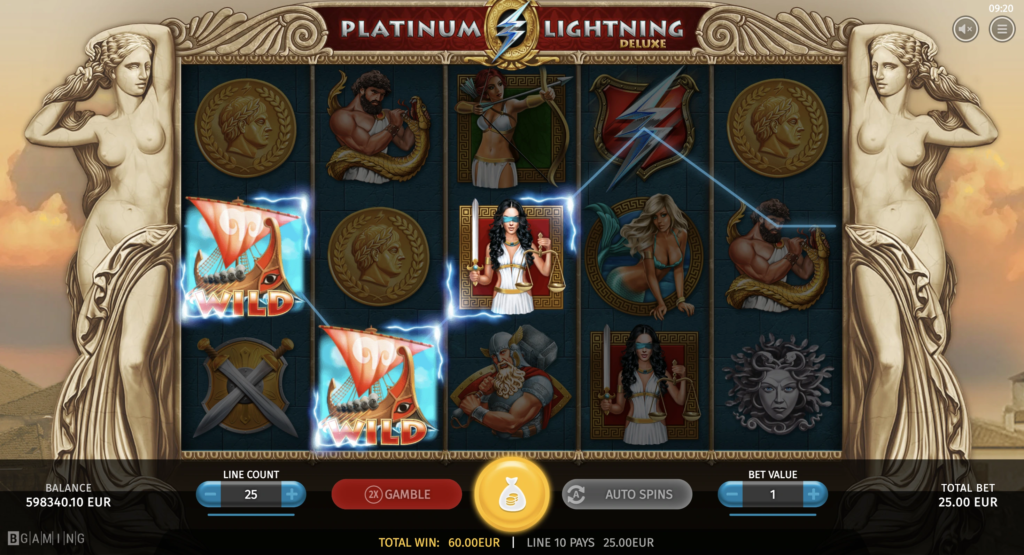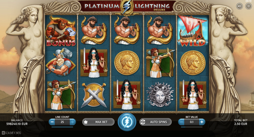 Prepárate para deleitarte con la renovada apariencia, la refinada jugabilidad y la revitalización general de la tragamonedas clásica. ¡Descubre el tesoro de los dioses y héroes de la Antigua Grecia con el poder electrizante de Platinum Lightning Deluxe!