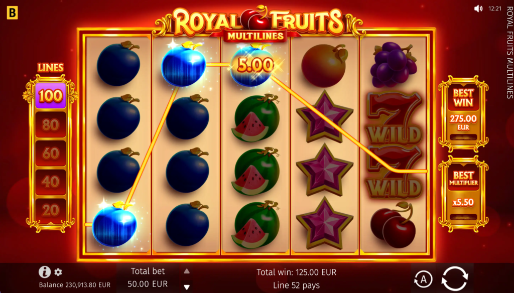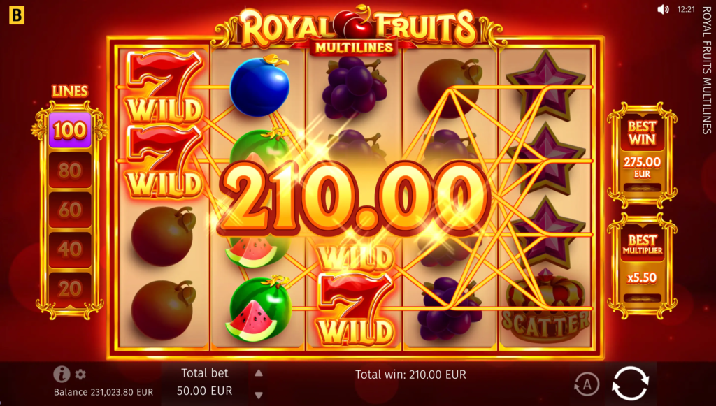 ¿Cuál es la mayor ganancia disponible en Royal Fruits MultiLines?