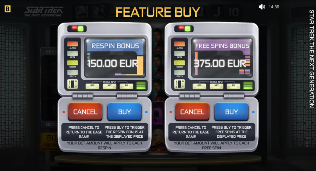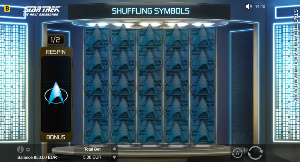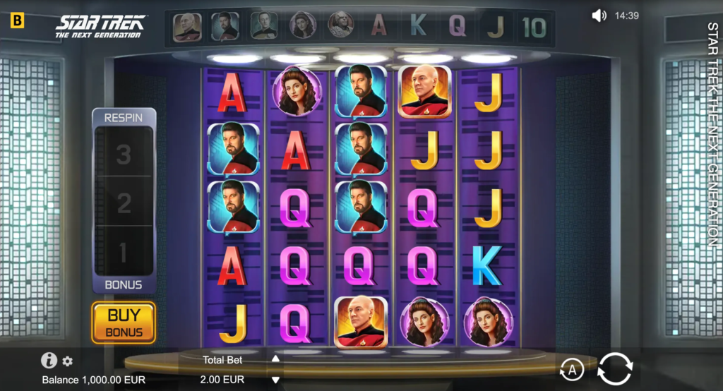 Star Trek™: The Next Generation da la bienvenida a ansiosos alféreces a bordo del USS Enterprise-D, donde el capitán Picard dirige a la renombrada y diversa tripulación en una aventura de descubrimiento de la que todo el mundo sueña con formar parte! El ímpetu en cascada de los rodillos de 5×5 viene acompañado de recargas inesperadas, un Medidor de Potencia para mantener bajo control tus actividades giratorias, una Bonificación de Respin que puede desbloquear la exclusiva Rueda de Velocidad Warp de 3 niveles, y 4 misiones de Giros Gratis de diferentes volatilidades. ¡Los graduados de la Academia de la Flota Estelar de todos los intereses y estilos de juego son bienvenidos!
