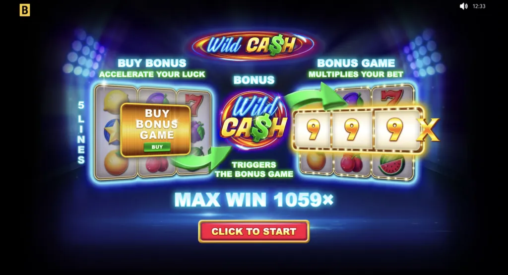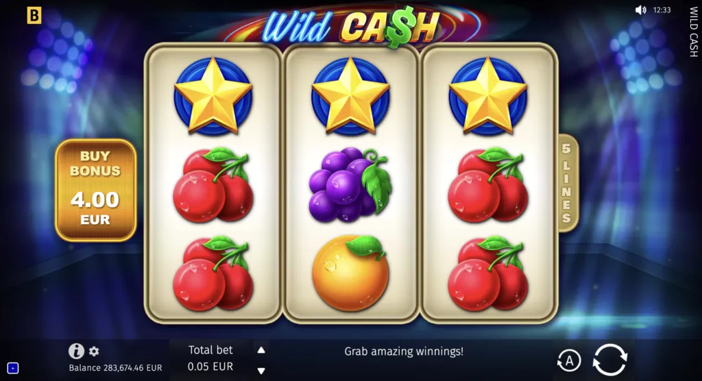 Shiny classic 3×3 slot with just 5 paylines, but offering exciting potential with generous winning possibilities and features like a Bonus game with multipliers and Buy Bonus. Join the hunt for Wild Cash!