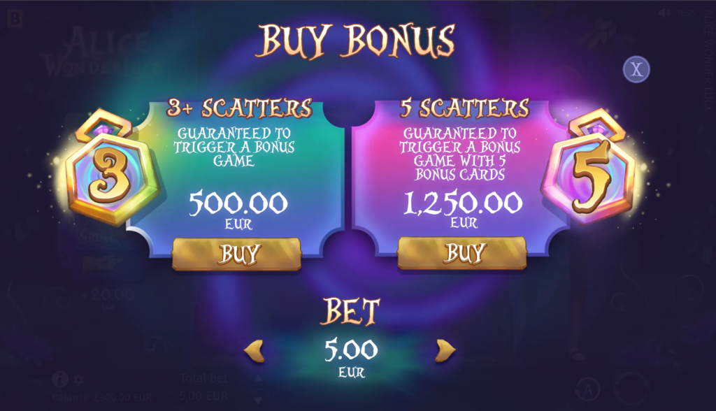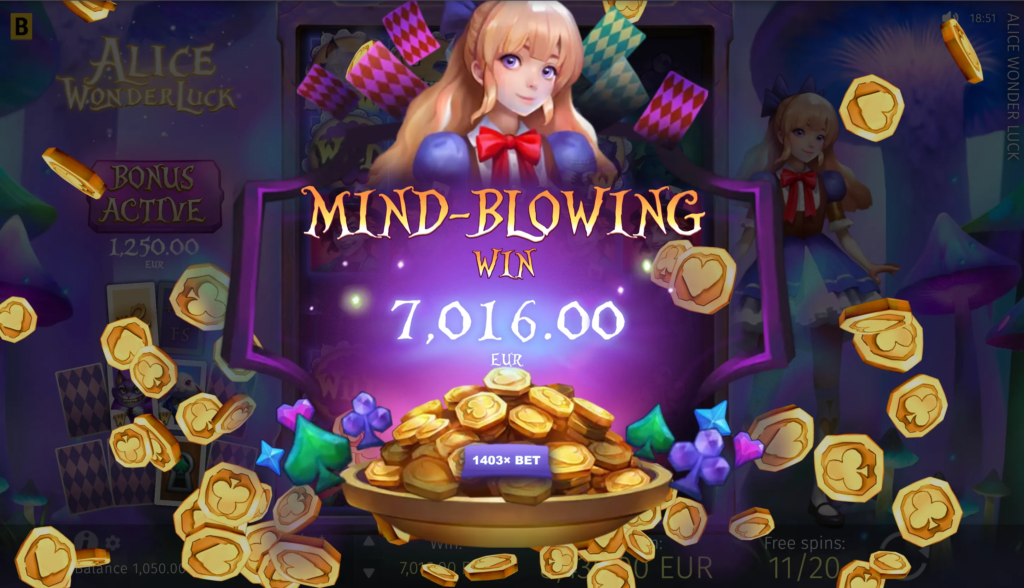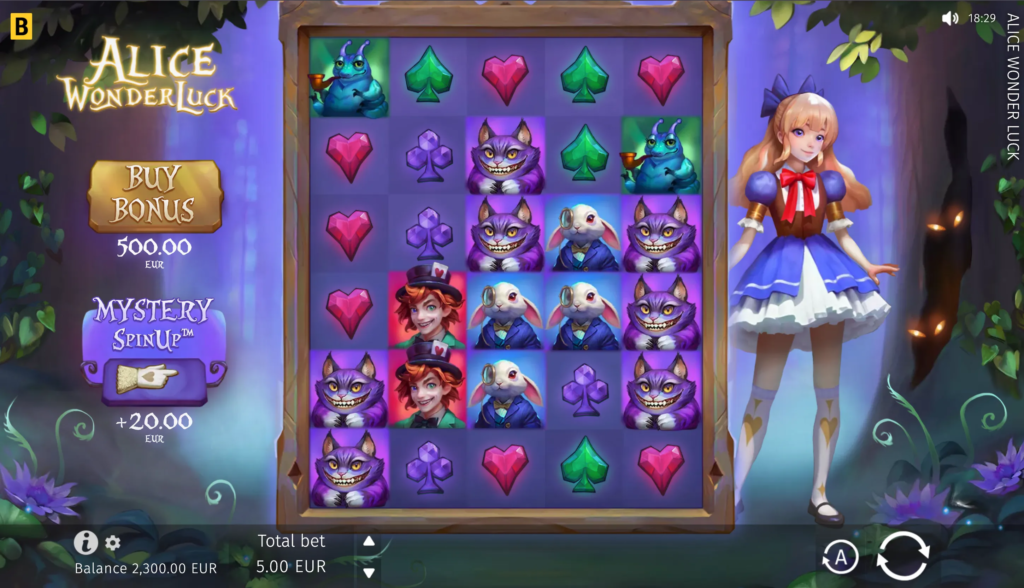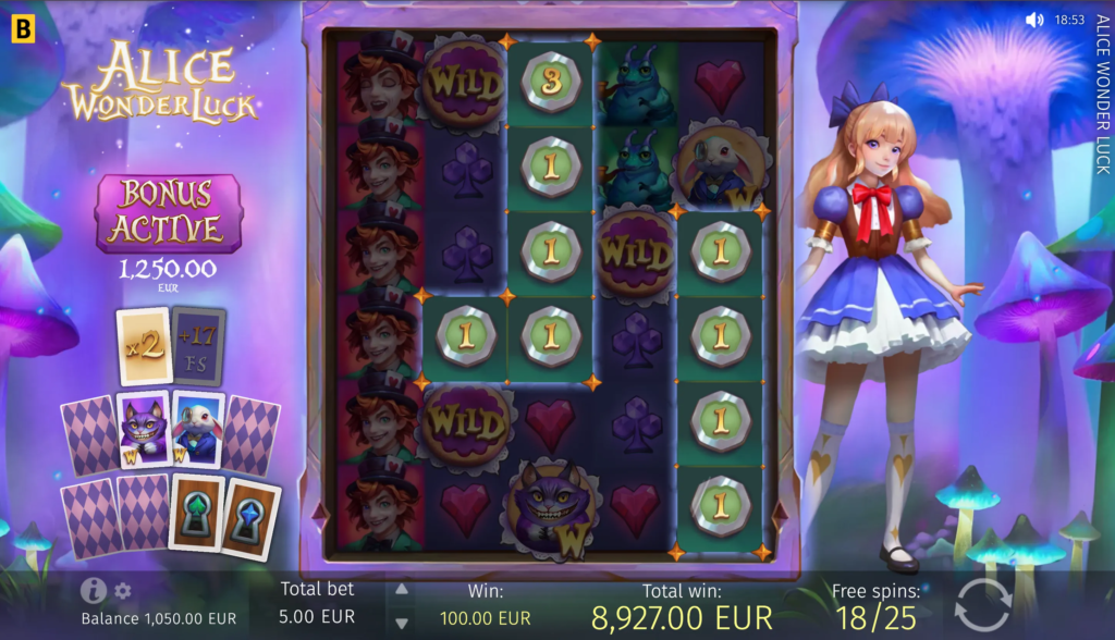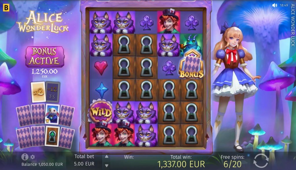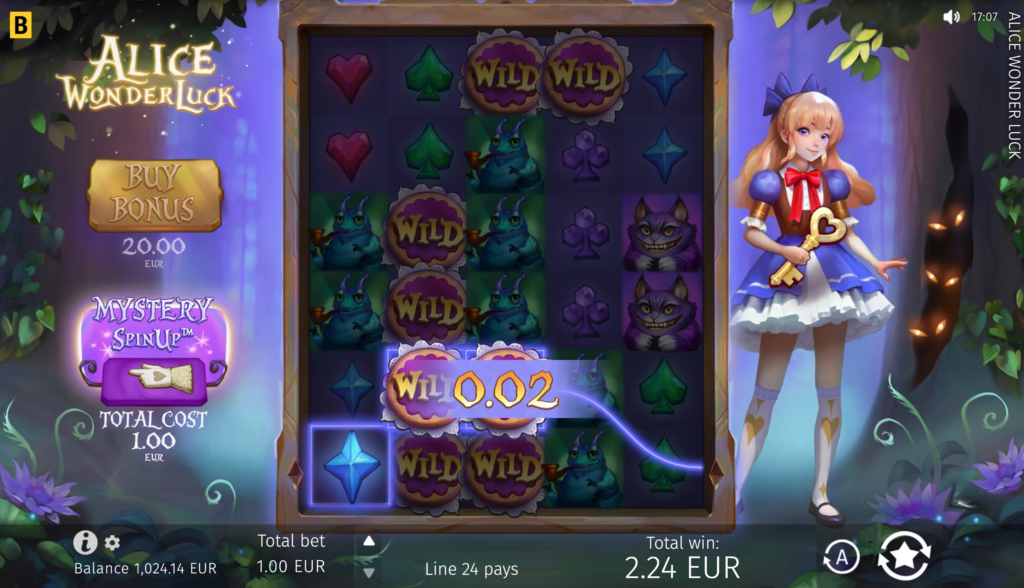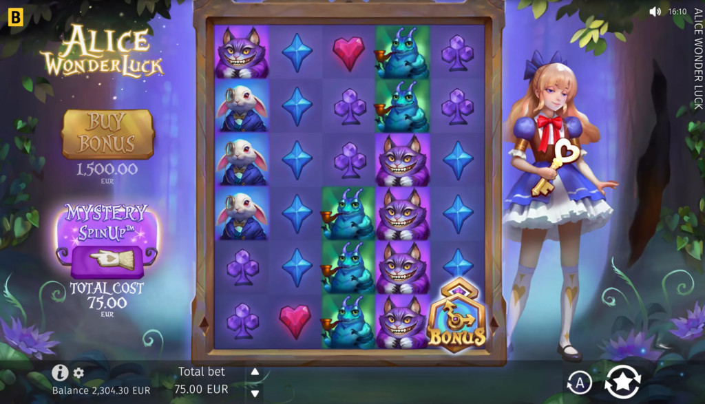 You can try all the slot machine’s unique feature combinations in the Alice WonderLuck demo on BGaming’s website and various online demo slots platforms.