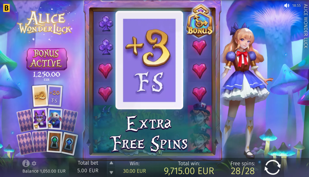 Of course! Alice WonderLuck is a feature-packed gambling adventure with an unusual Free Spins Bonus game. Depending on the number of Scatters, you pick 3 to 5 extra features that will affect your gameplay. After earning free spins, you can gain even more feature picks by gambling on your free spins.