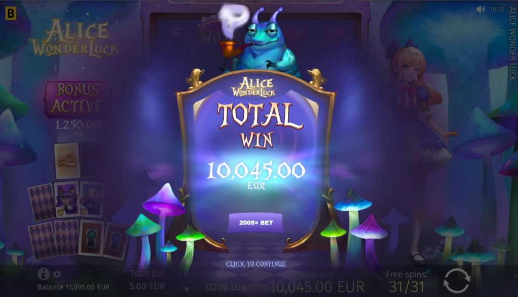 You can win real money playing Alice WonderLuck if the casino offers real-money withdrawals. If you play the Alice WonderLuck demo on bgaming.com or use a platform that doesn’t allow real-money withdrawals, then you can’t win real money in this game. Consult the operator’s terms and conditions.
