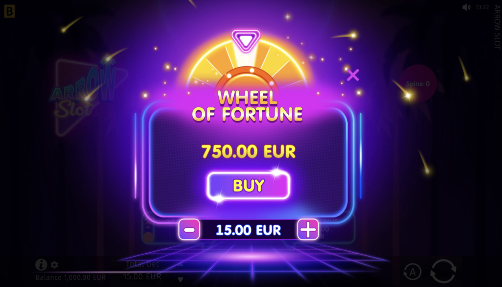 Feel the retrowave vibes and try new mechanics! Use the Chance x2 and Buy Bonus features to enter the Wheel of Fortune Bonus game as soon as possible and enjoy generous rewards. The 3×3 slot with a very unusual layout offers plenty of multipliers, so follow the arrow and let it point to big wins!