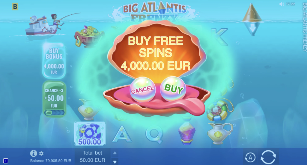 Big Atlantis Frenzy offers players exciting win potential, with the biggest win available being up to 5,000 times your stake. This substantial winning possibility makes it a highly rewarding and thrilling game for players looking to discover big treasures.