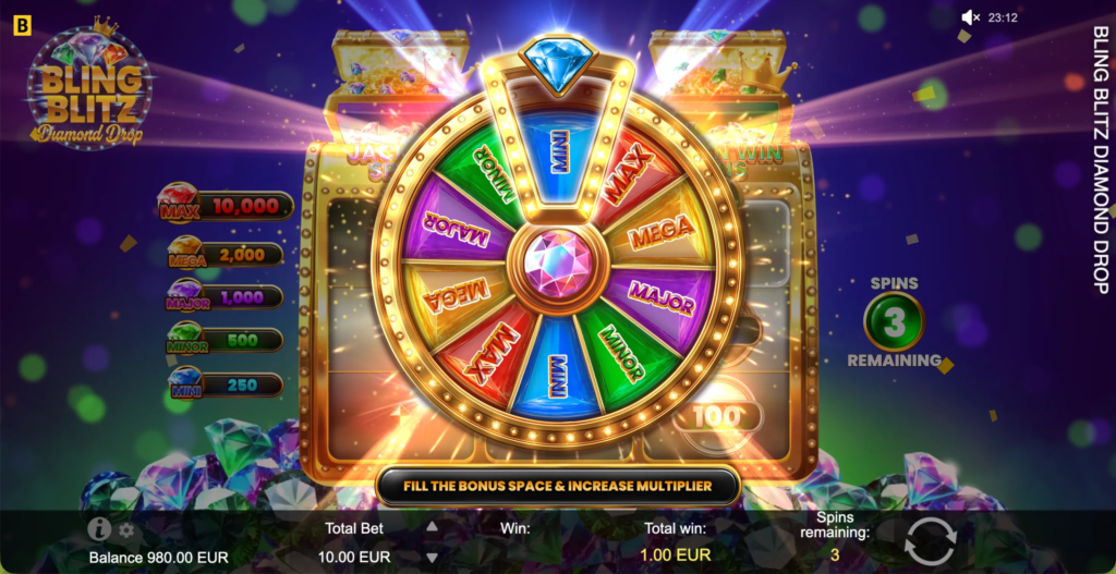 Bling Blitz Diamond Drop offers players the chance to win up to 3,000 times their initial stake, providing substantial payout opportunities through its exciting, straightforward gameplay.