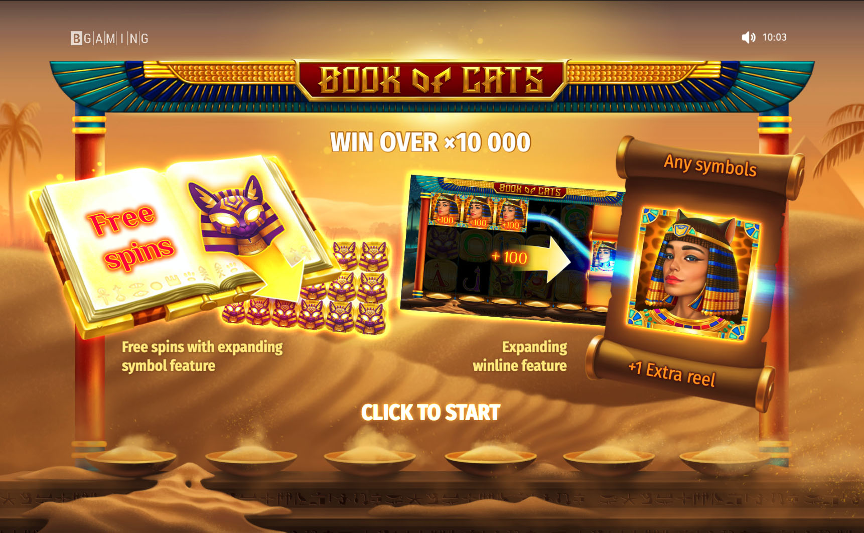 The Book of Cats is a captivating slot that will transport you into Egypt, offering antique treasures for your great pleasures. You will be closer than ever to the ancient myths of the golden age and experience jaw-dropping winnings. We hope you’ll find the game just purrfect!