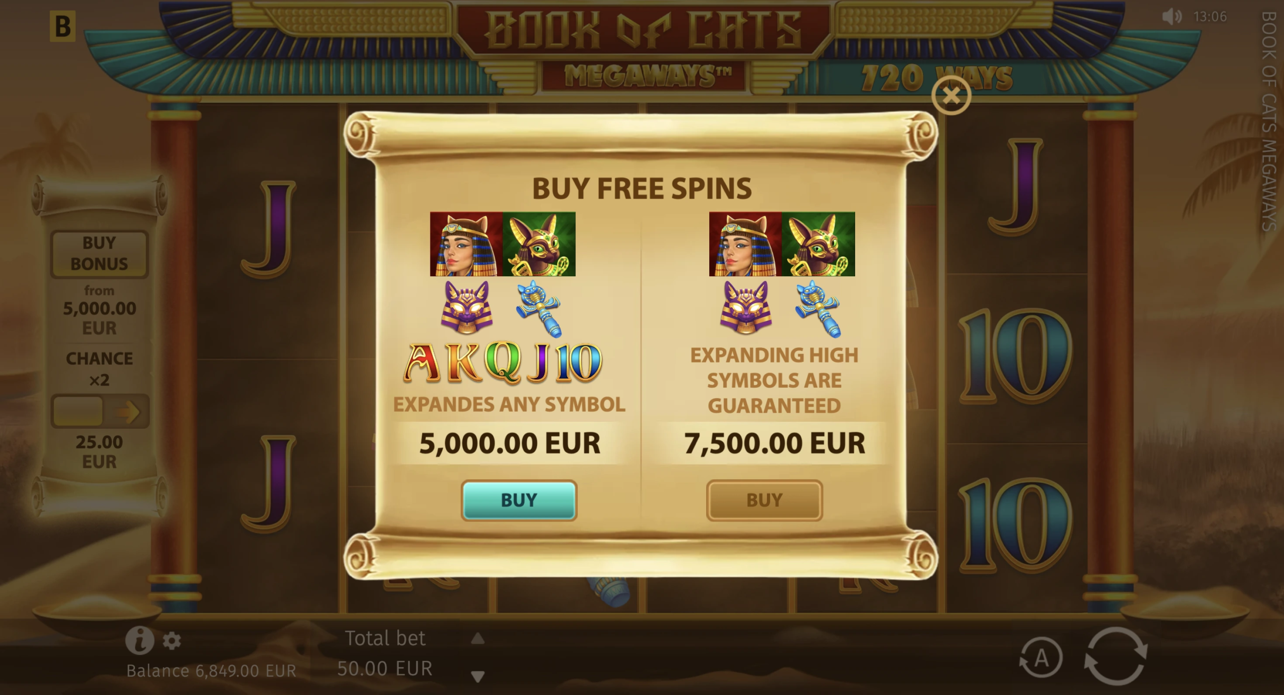 Book of Cats MEGAWAYS™ offers an exciting maximum payout potential, allowing players to win up to 10,000 times their stake. This substantial winning opportunity makes it a thrilling choice for players seeking adventure and big rewards.