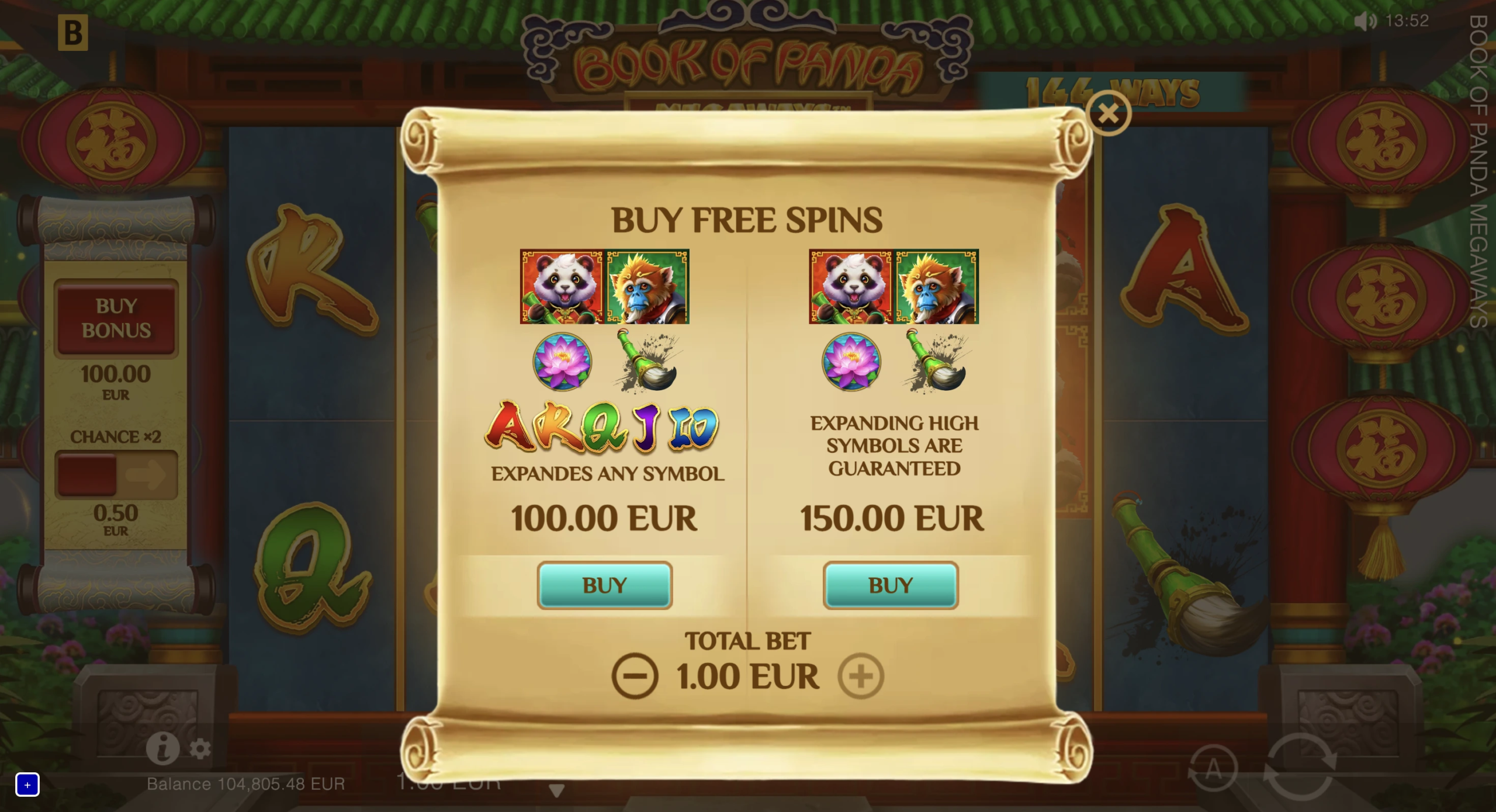Powered by MEGAWAYS™ and Book mechanics, this oriental slot boasts a single symbol for both Wild and Scatter, an engaging Free Spins round that includes an Expanding symbol and x2 to x10 multipliers, along with Buy features.