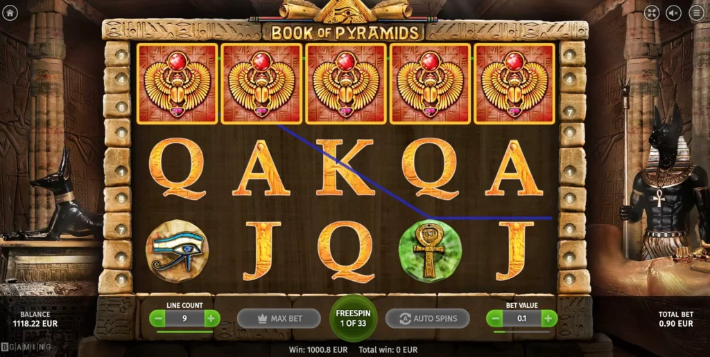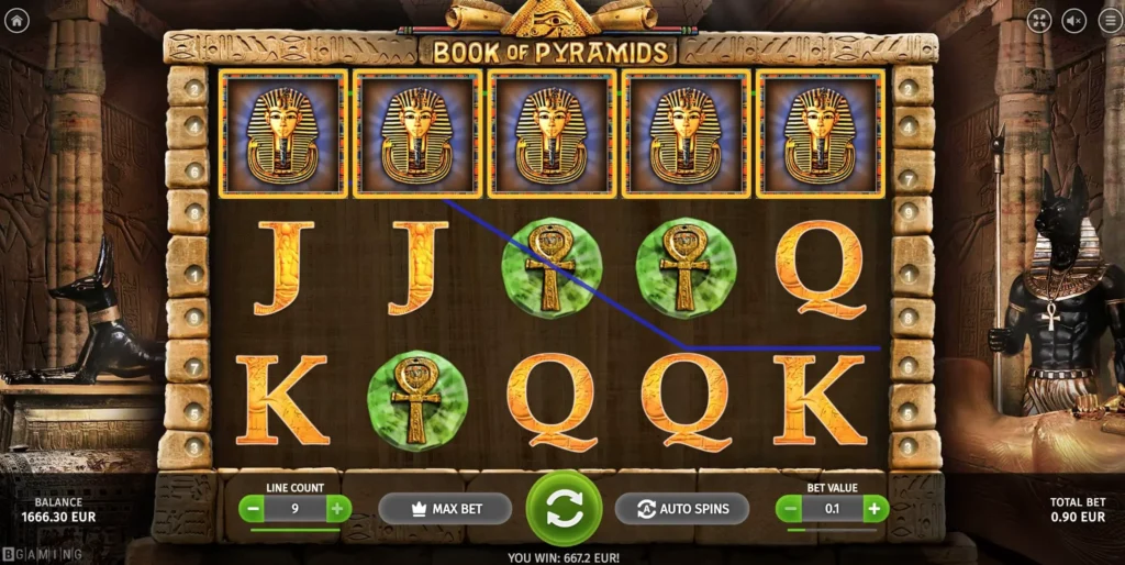 Book of Pyramids offers substantial winning potential, with the chance to win up to 1,939 times your bet during the game, especially through its free spins feature.