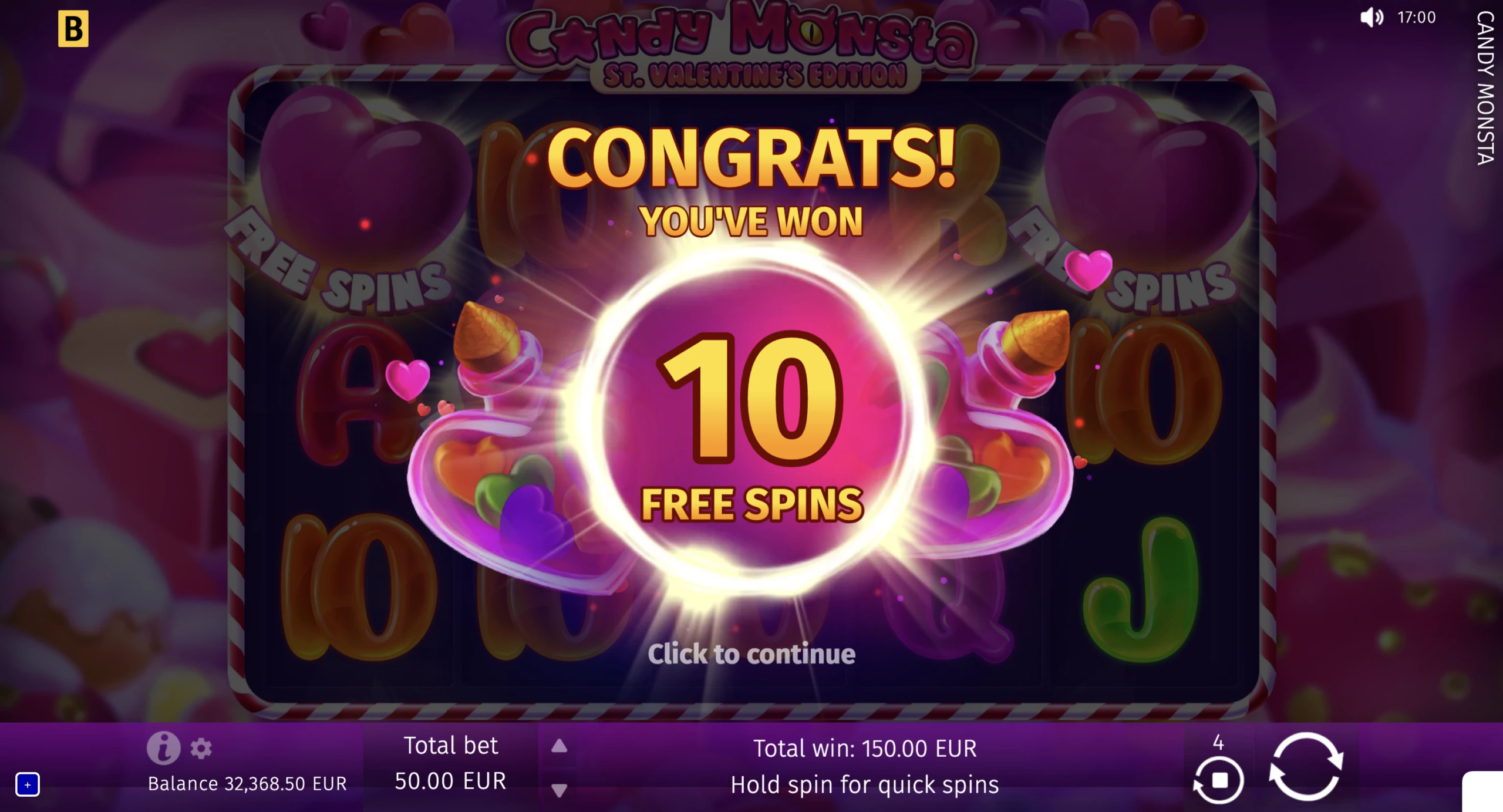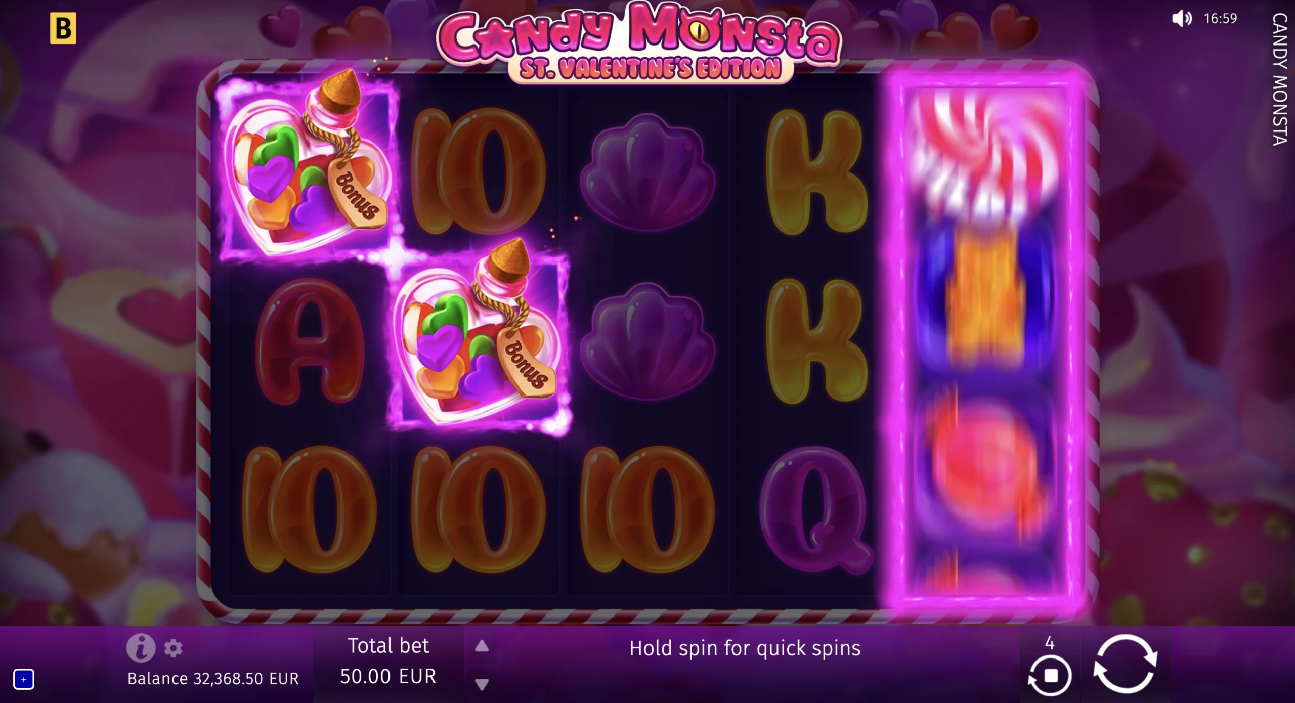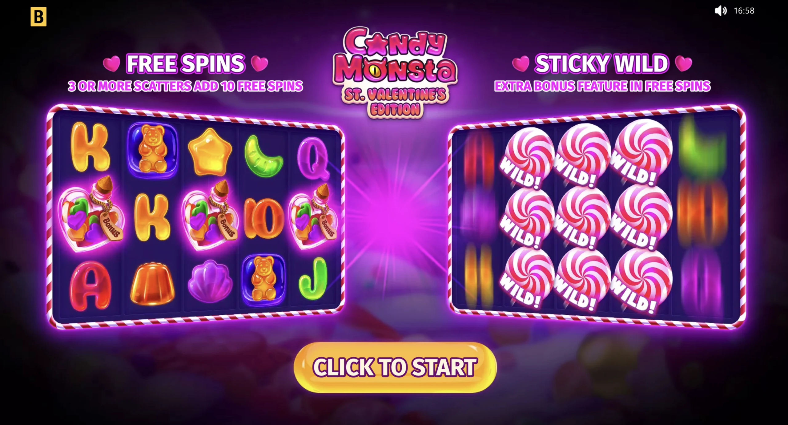 In this slot adventure, a cute and fancy monster ensures a wild streak of juicy winnings. This mouthwatering game is filled with sweet rewarding features, such as Candy Castle Scatters and Free Spin game with Sticky Wilds!