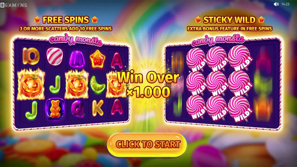Candy Monsta Halloween is here to spice up one of the most exciting holidays. With a cute and fancy monster on your side, juicy winnings are guaranteed. Enjoy sweet Candy Castle Scatters and free spins with Sticky Wilds as they dive you into a mouthwatering gaming experience with this Halloween-themed slot!