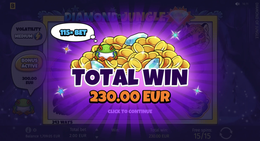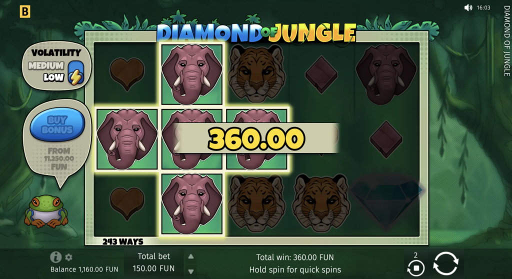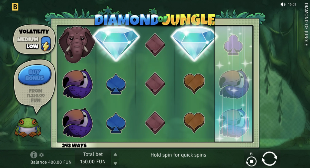 The biggest win in Diamond of Jungle can reach up to x1,500 of your bet, offering significant winning potential through its exciting jungle-themed gameplay and features.