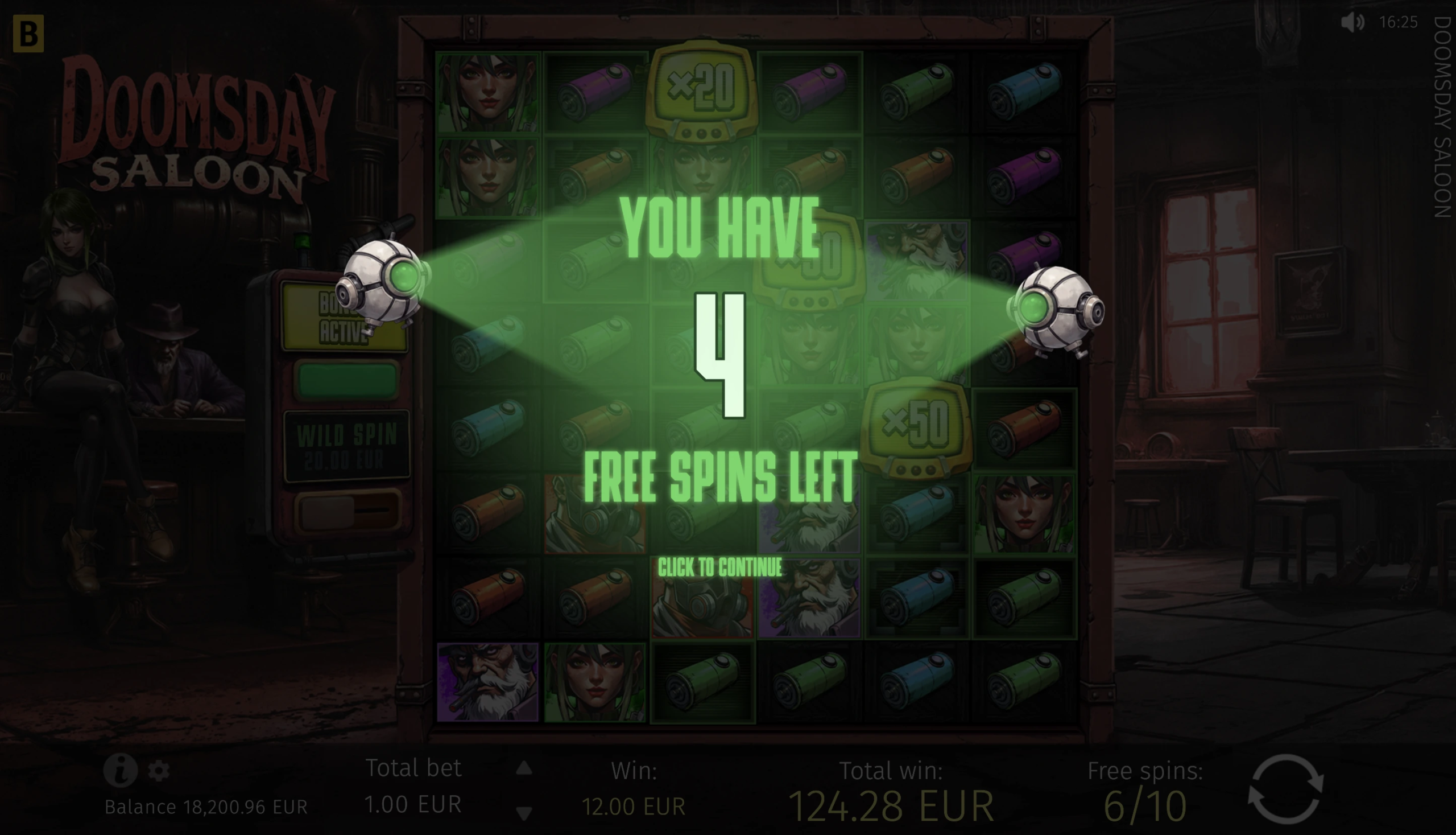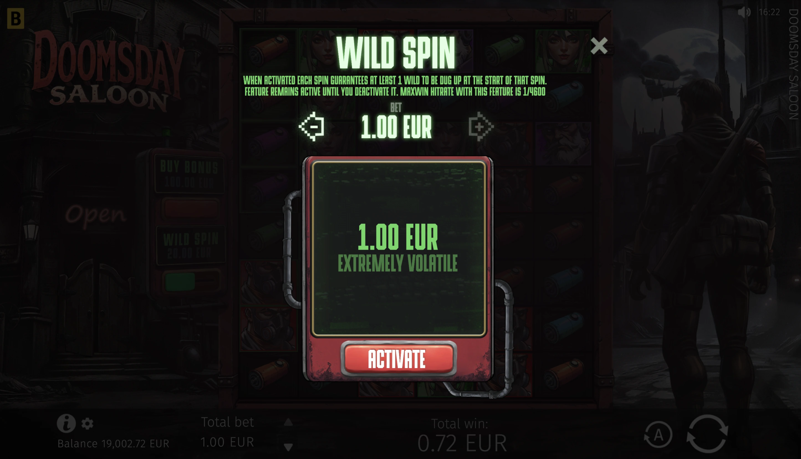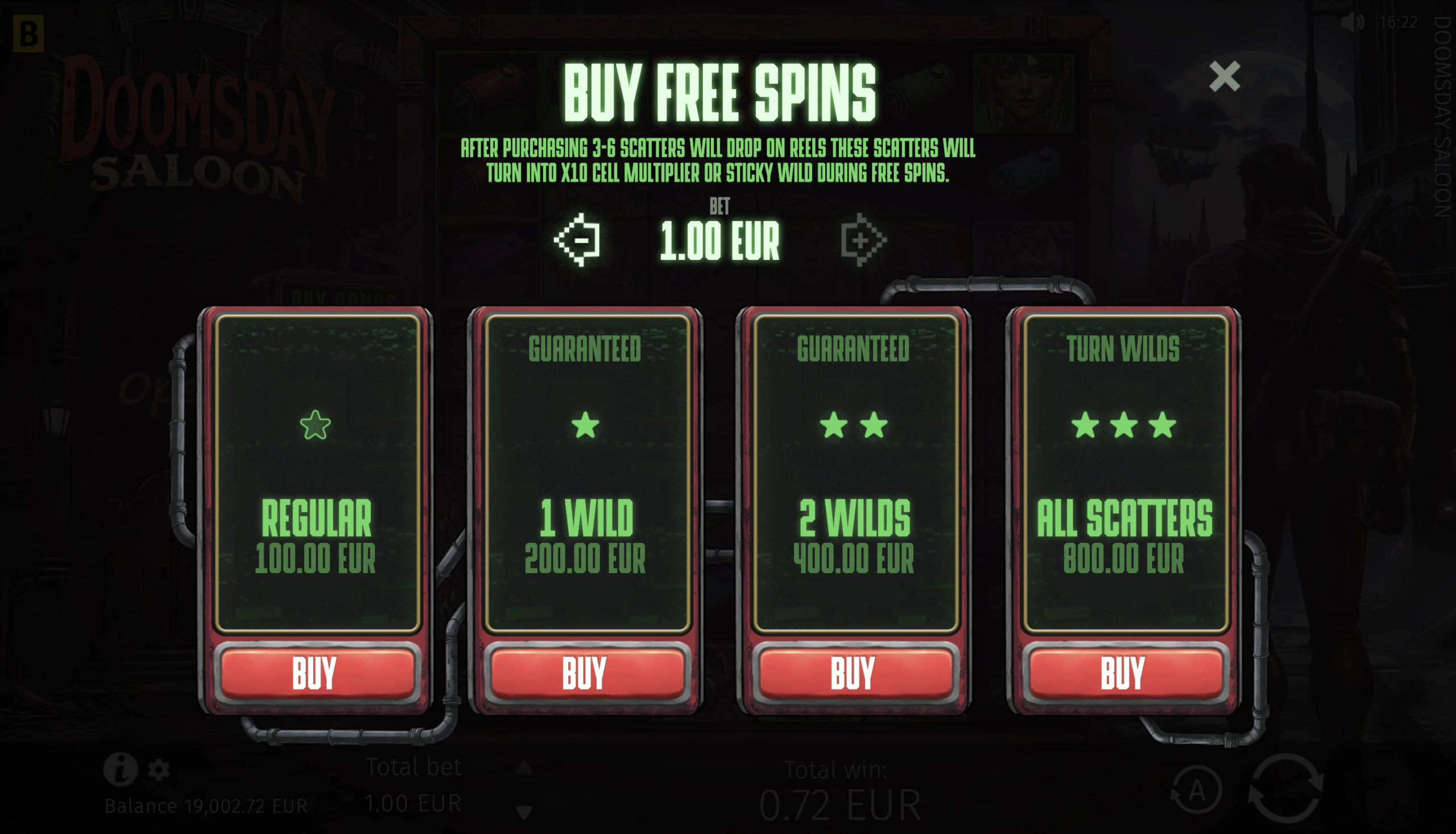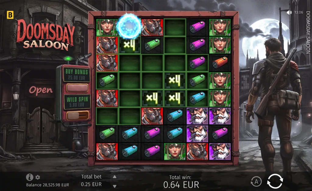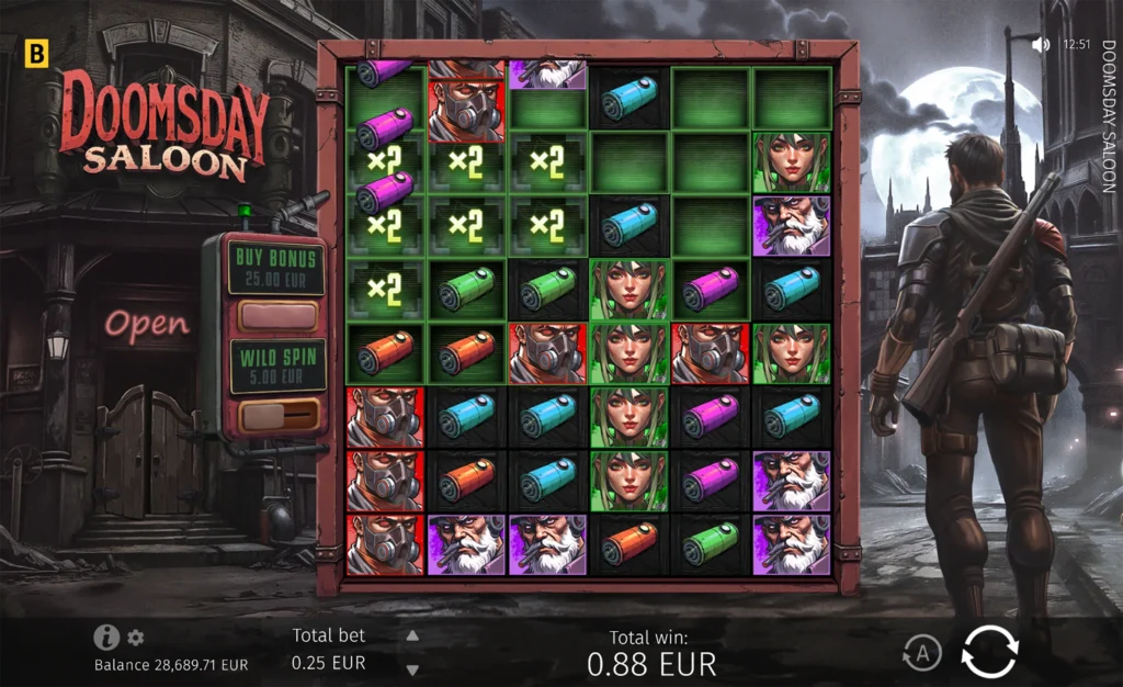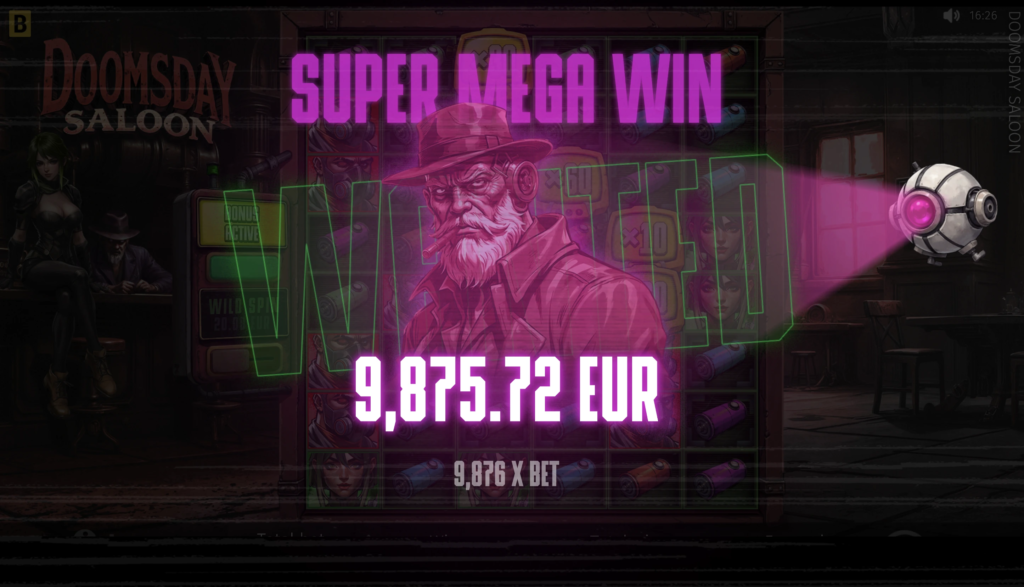 Doomsday Saloon offers a maximum multiplier of x10,000 of a player’s bet. This jackpot-like win can be exceptionally rewarding, making this already thrilling slot even more fun to play.