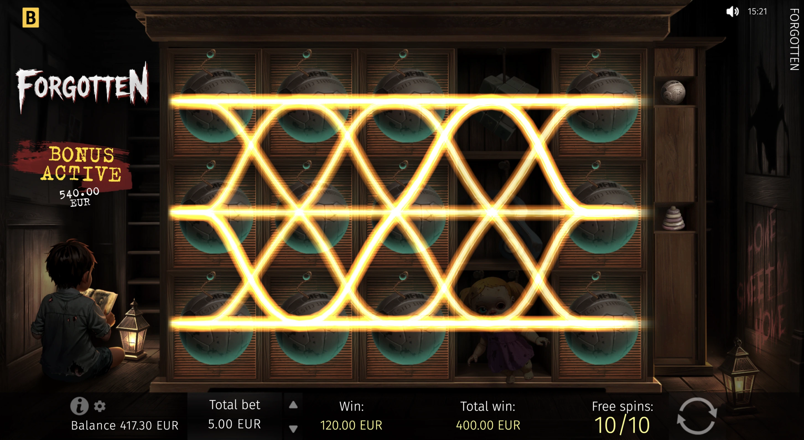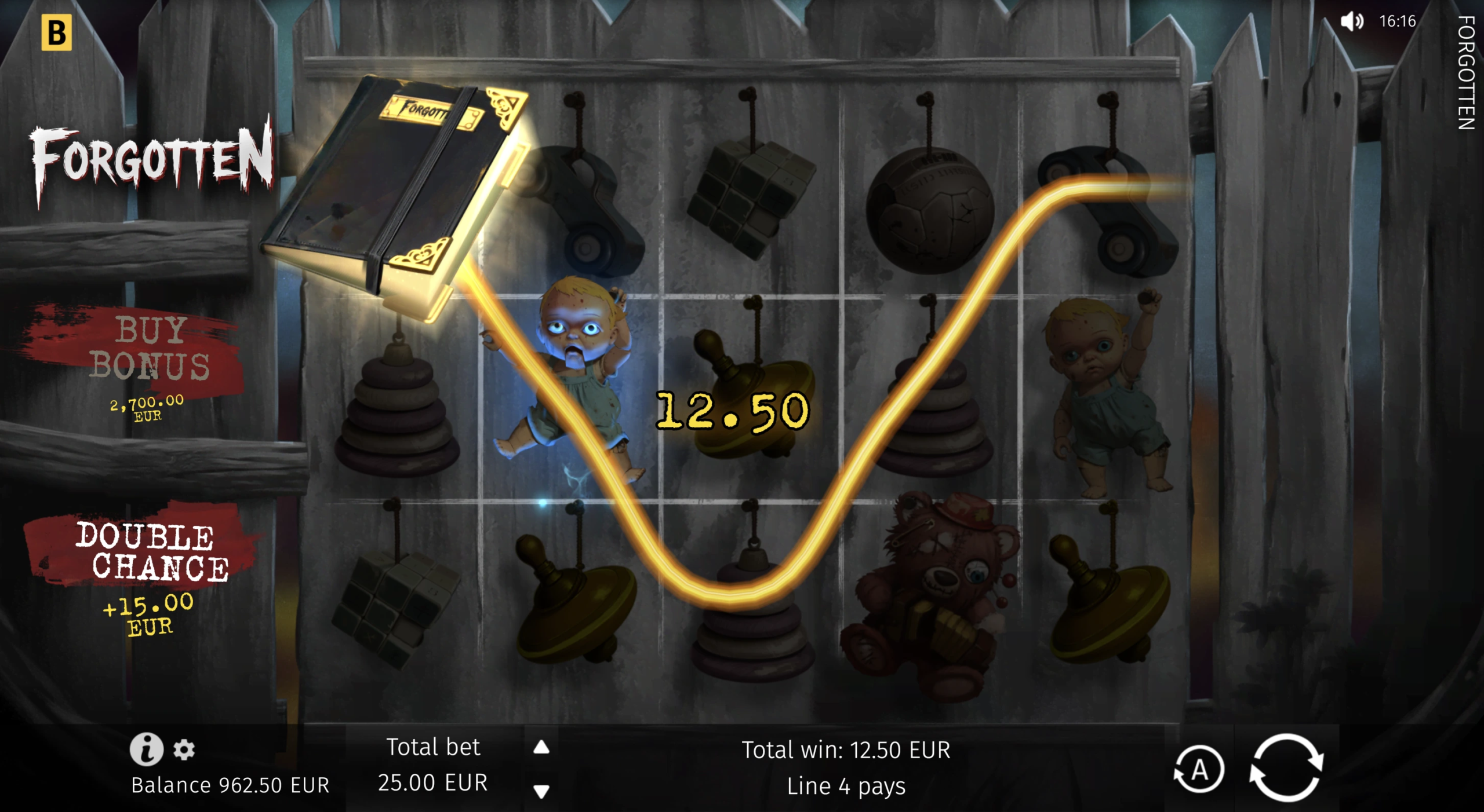 When you return to your now empty old family home, everything looks different. Forgotten toys can be found here and there, and a mysterious notebook points you toward the haunted attic. There, the Bonus game of 10 Free Spins spawns Expanding toy symbols, and your total win of the round answers the question: who can you trust to survive this ghost story?