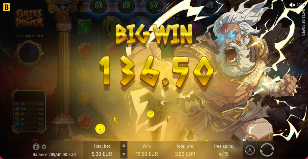 Gates of Power offers exciting win possibilities, with the biggest win available being up to 15,000 times your stake. Dive into this divine world for a chance at epic rewards.