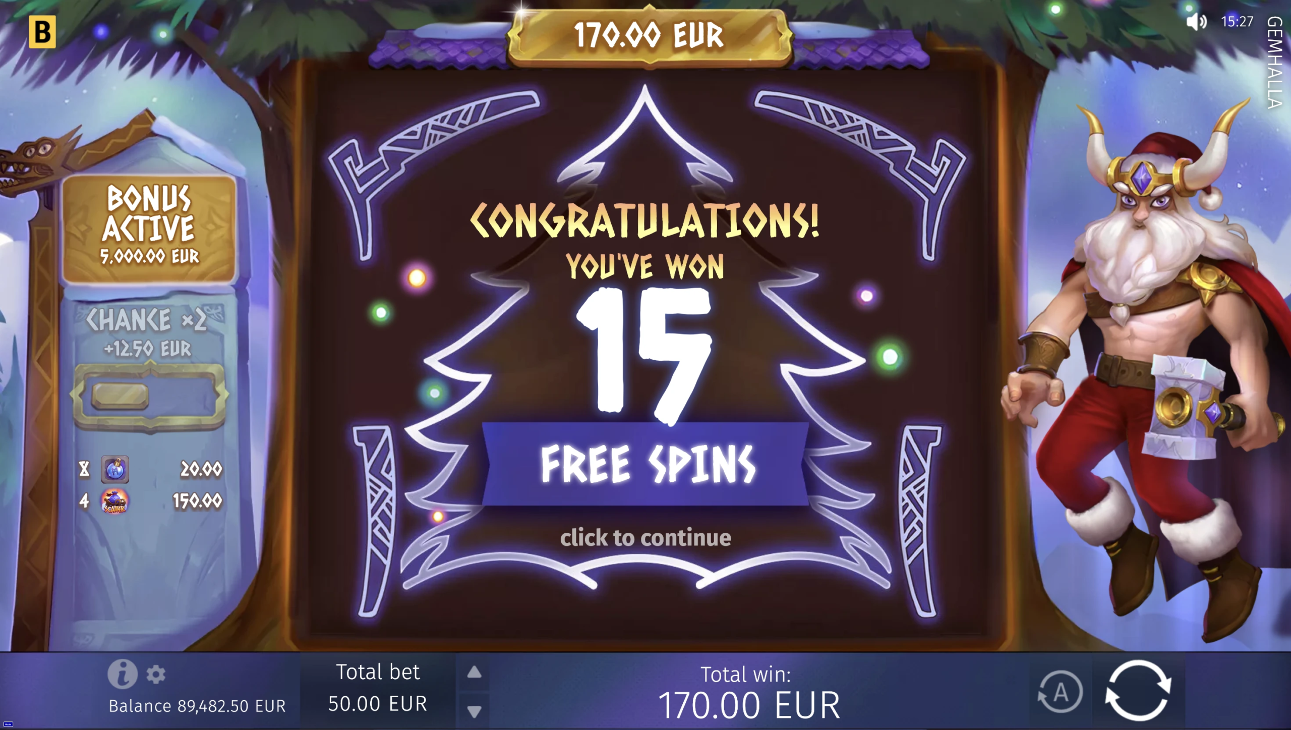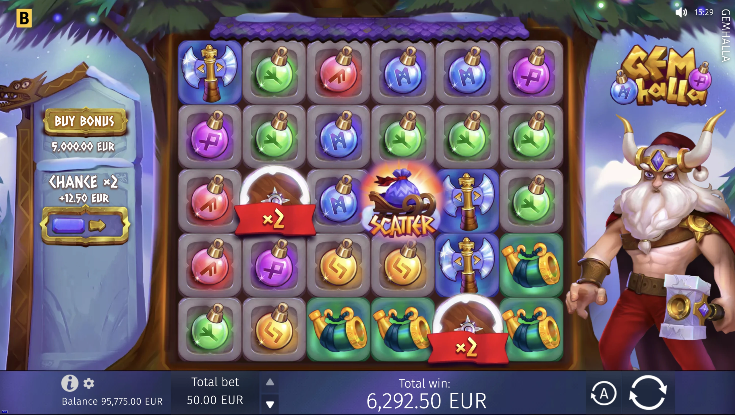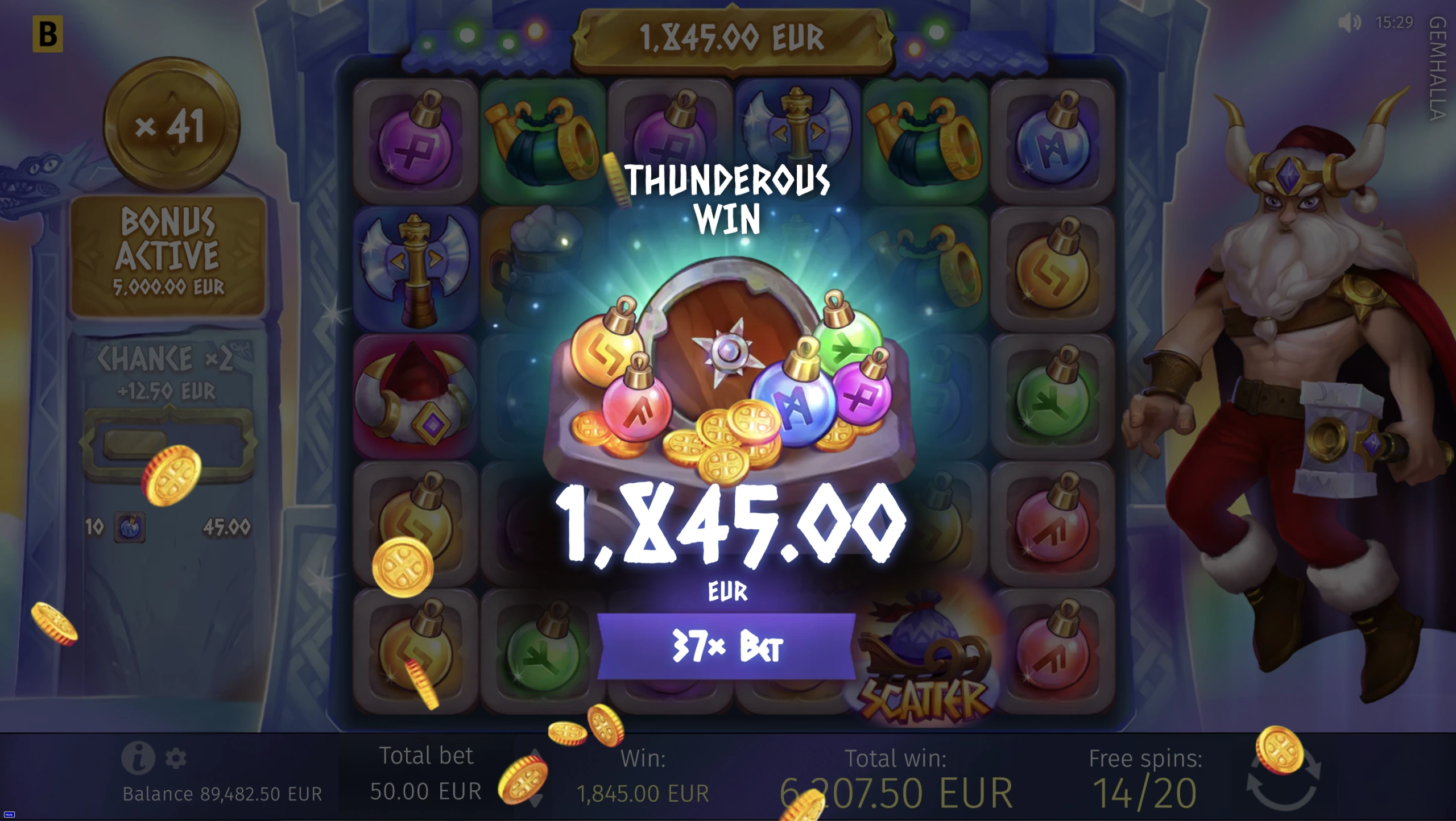 In Norse mythology, the mighty Thor is the god of lightning and thunder, and in Gemhalla, he uses his incredible magical powers as the god of multipliers! Watch him change into a festive red garment and switch his regular horned helmet to a holiday one in the name of the Xmas celebrations, and join the merrymaking!