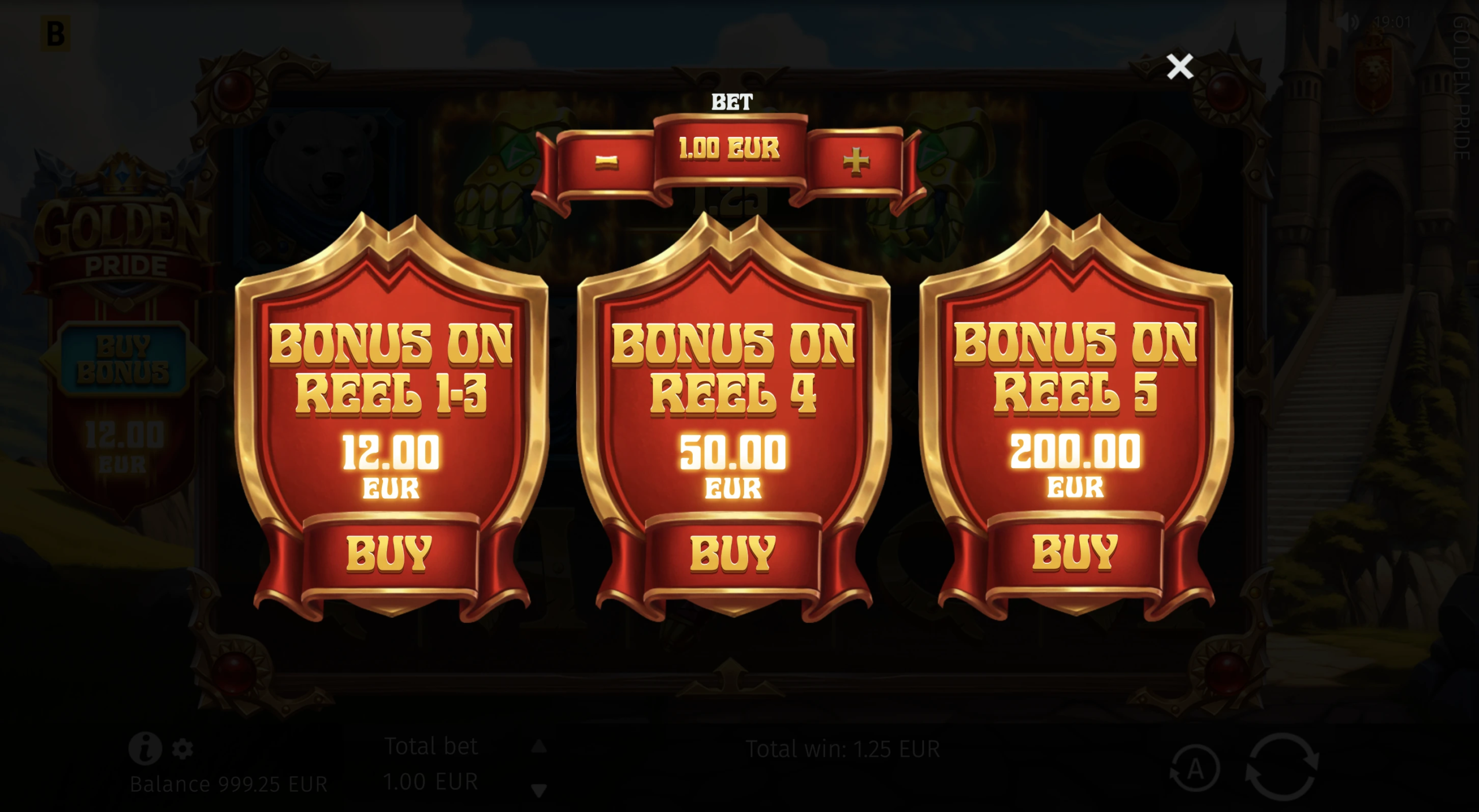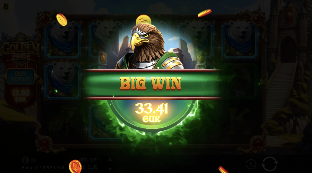 The biggest win players can achieve in Golden Pride is a jackpot-like payout of up to x15,360 of the stake, offering exciting win potential in this captivating Medieval slot.