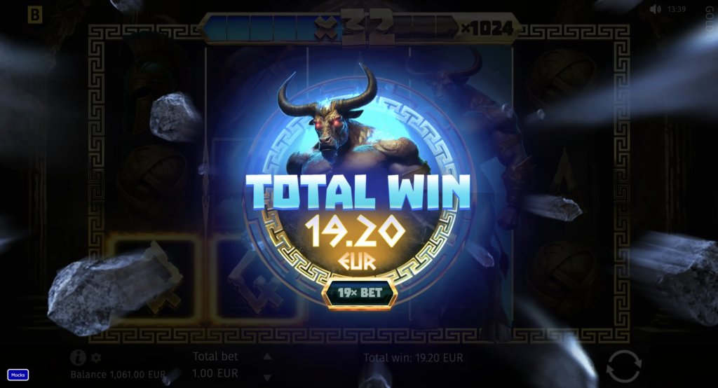 This visually intricate 5×3 slot is built on an Expanded Wild symbol that looks like a full-bodied Minotaur once it drops. This Wild triggers the Bonus game of Respins, which goes on until a winning combination occurs, with every “empty” spin increasing the multiplier up to x1,024. To activate the round immediately, 3 versions of Buy Bonus are available.