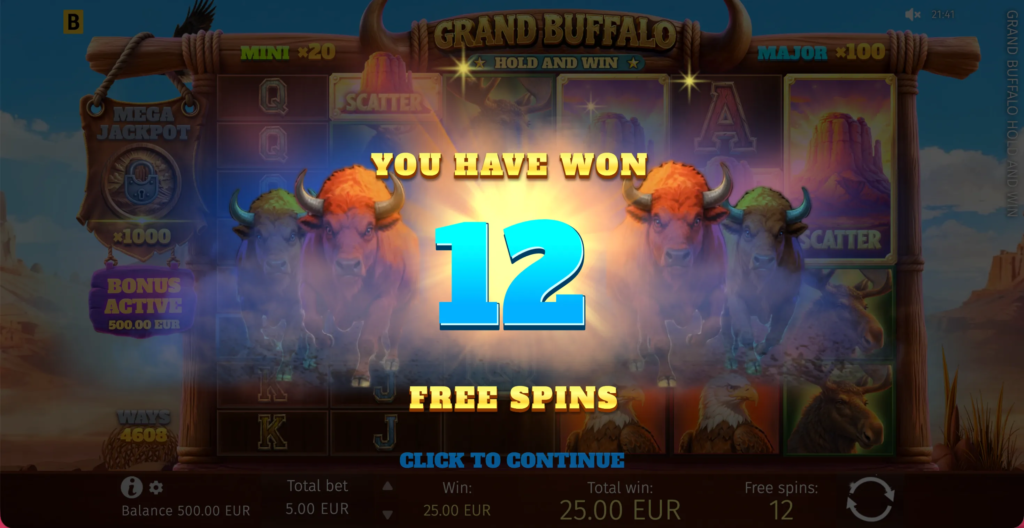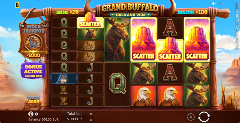 Grand Buffalo Hold and Win offers players the chance to win up to 5,000 times their initial stake, providing substantial payouts through its exciting, innovative gameplay.