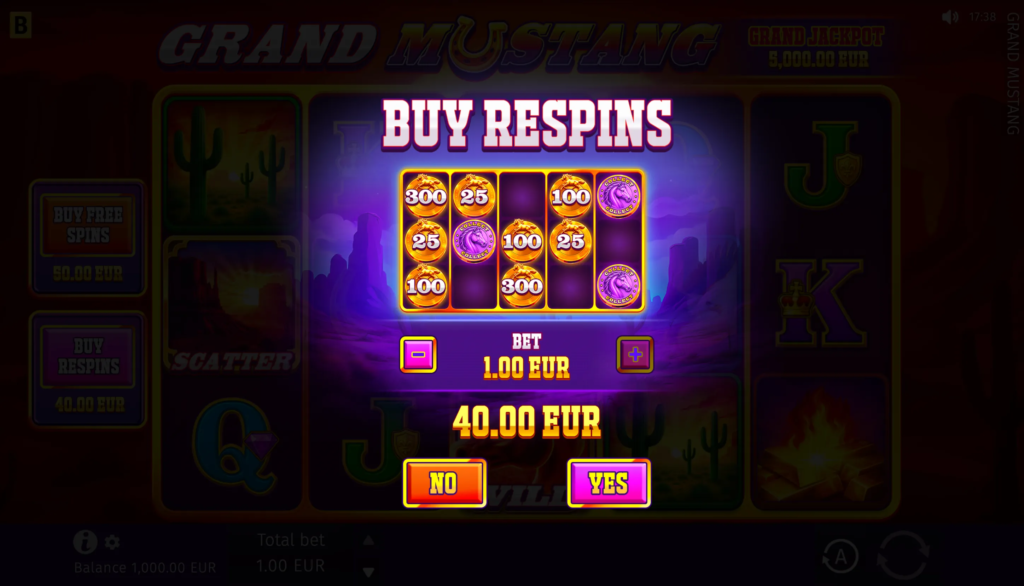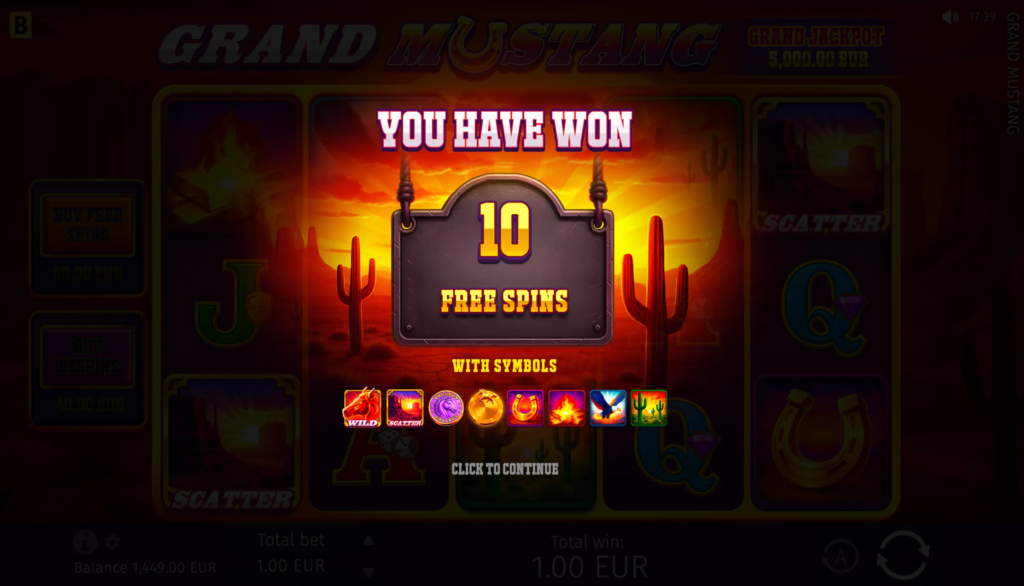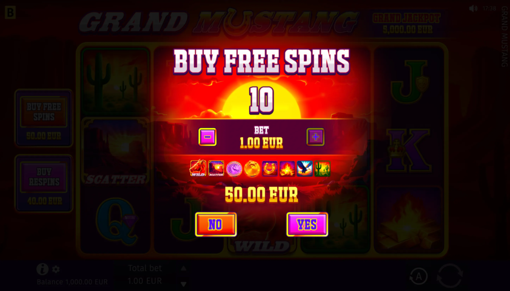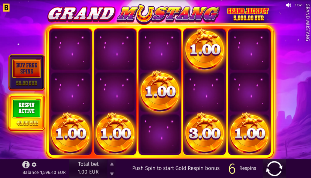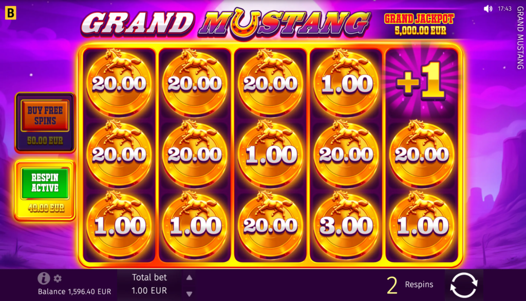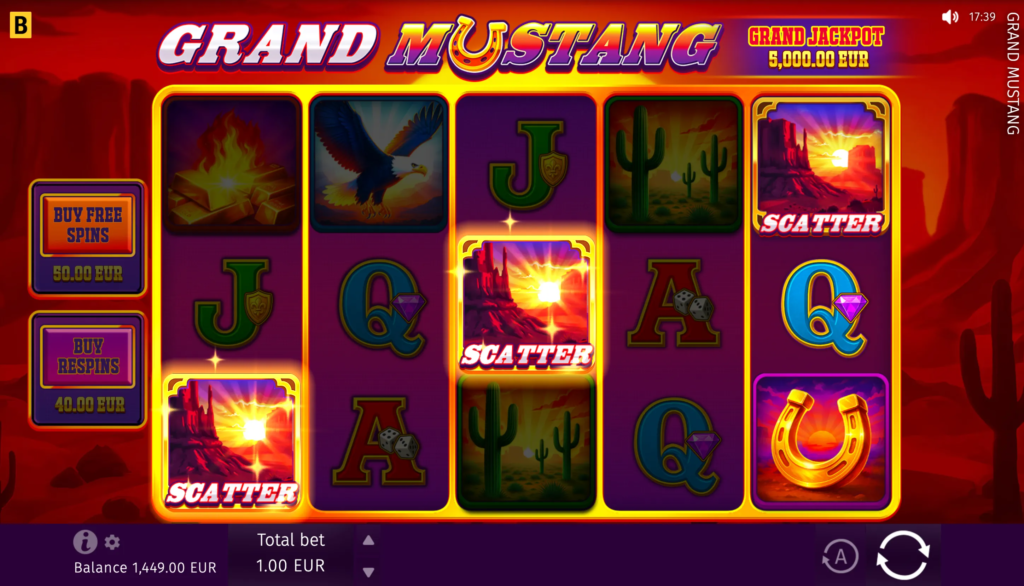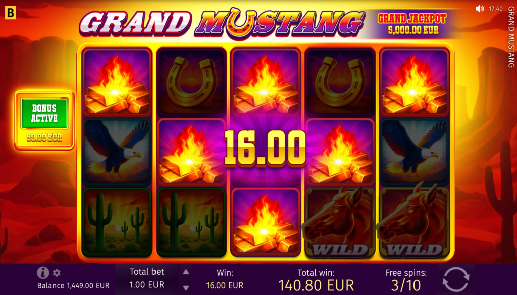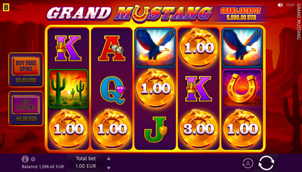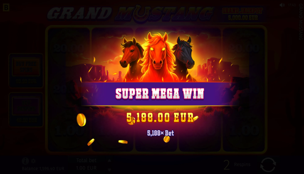 In the Grand Mustang game, players can anticipate big wins with the maximum win potential of up to x5,624 of their bet.