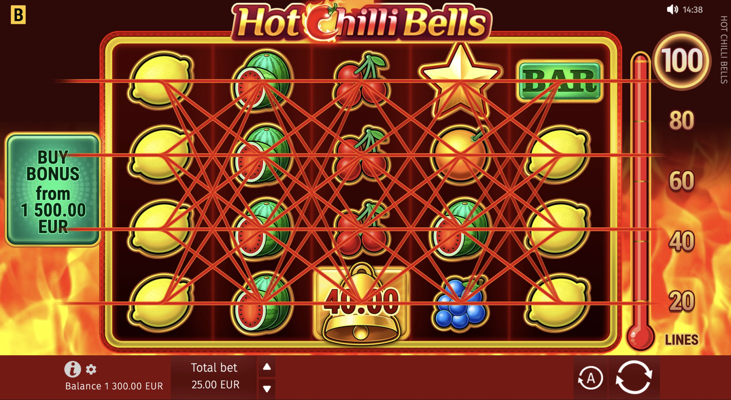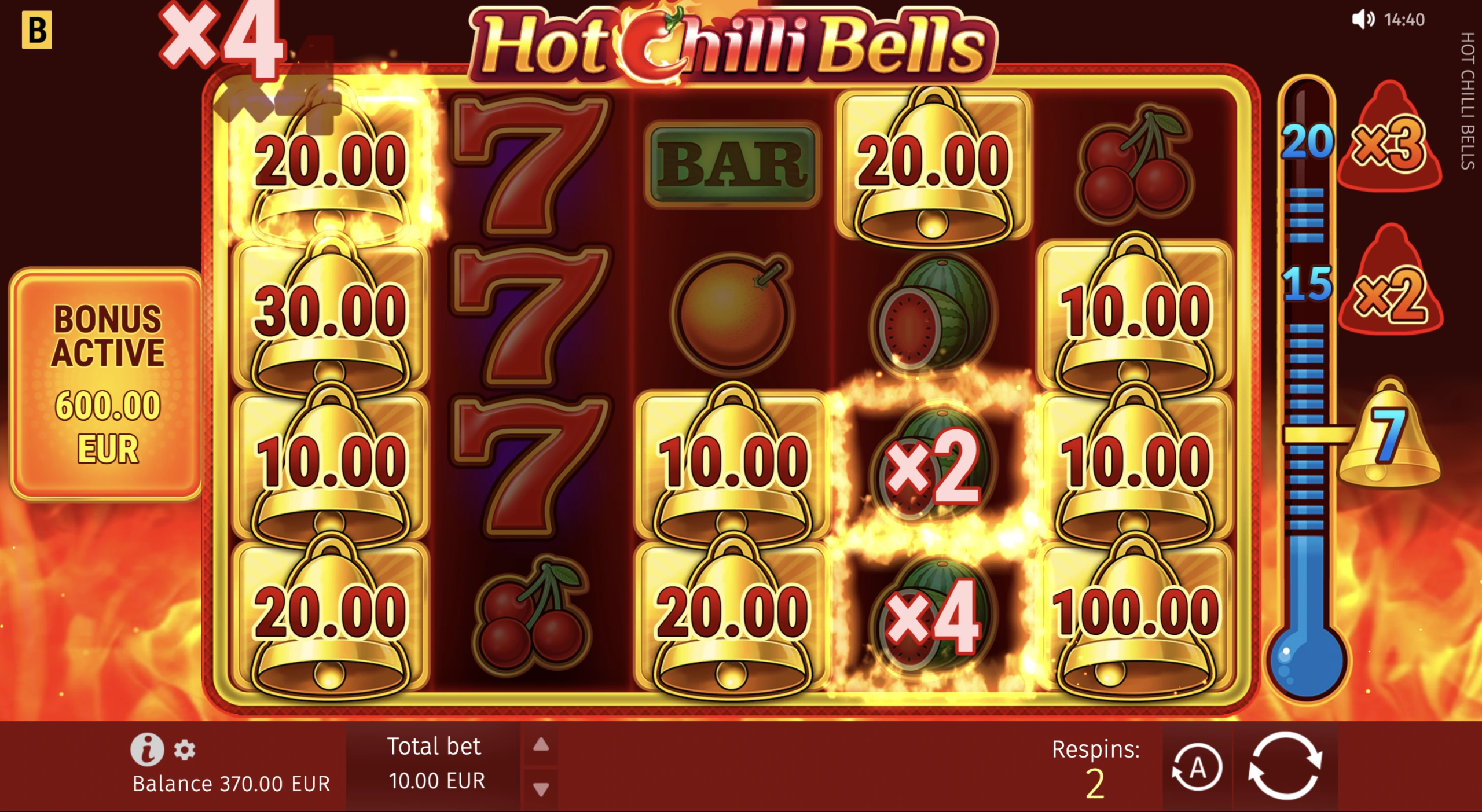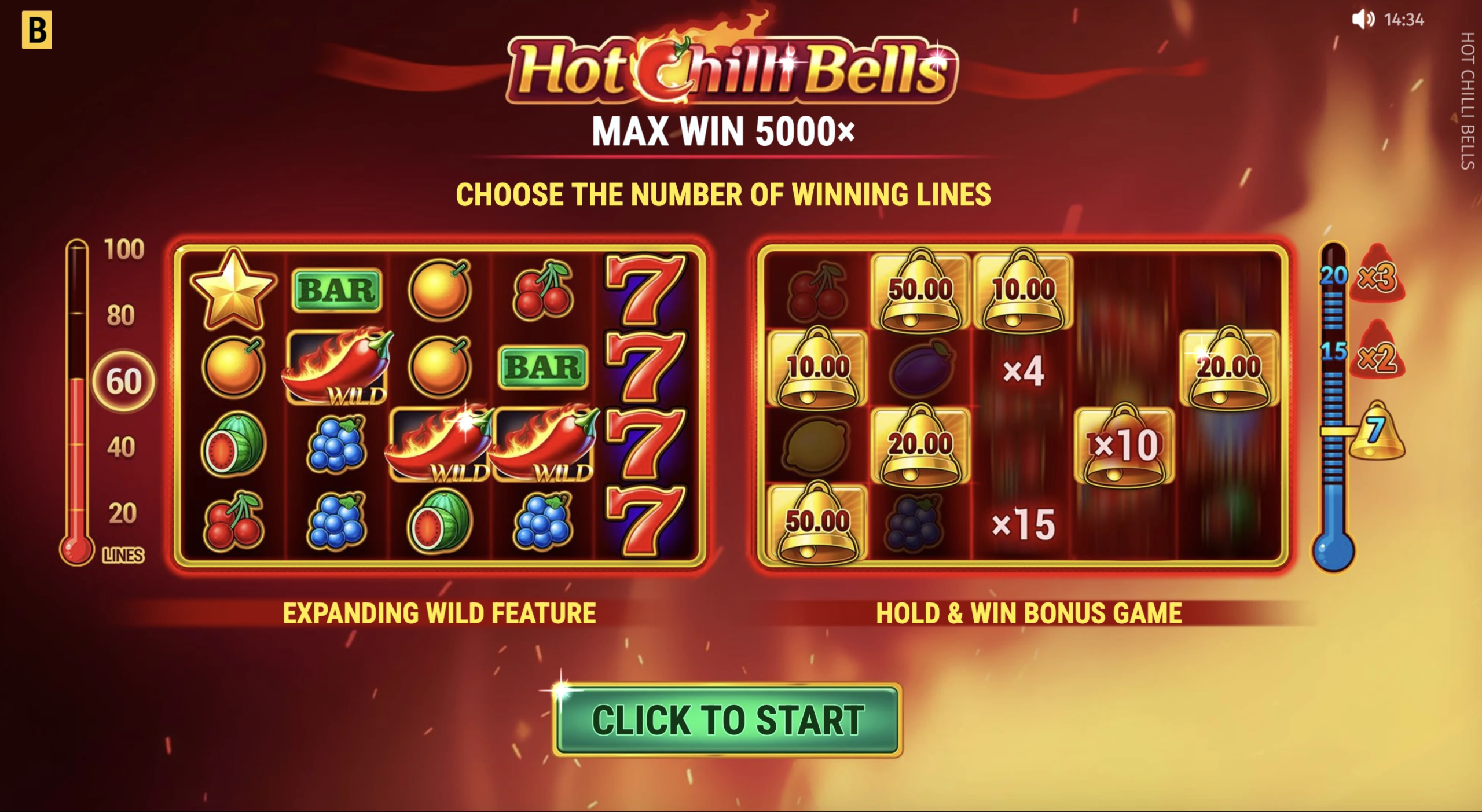 The biggest win in Hot Chilli Bells can reach up to 5,000 times your stake, offering substantial payouts.