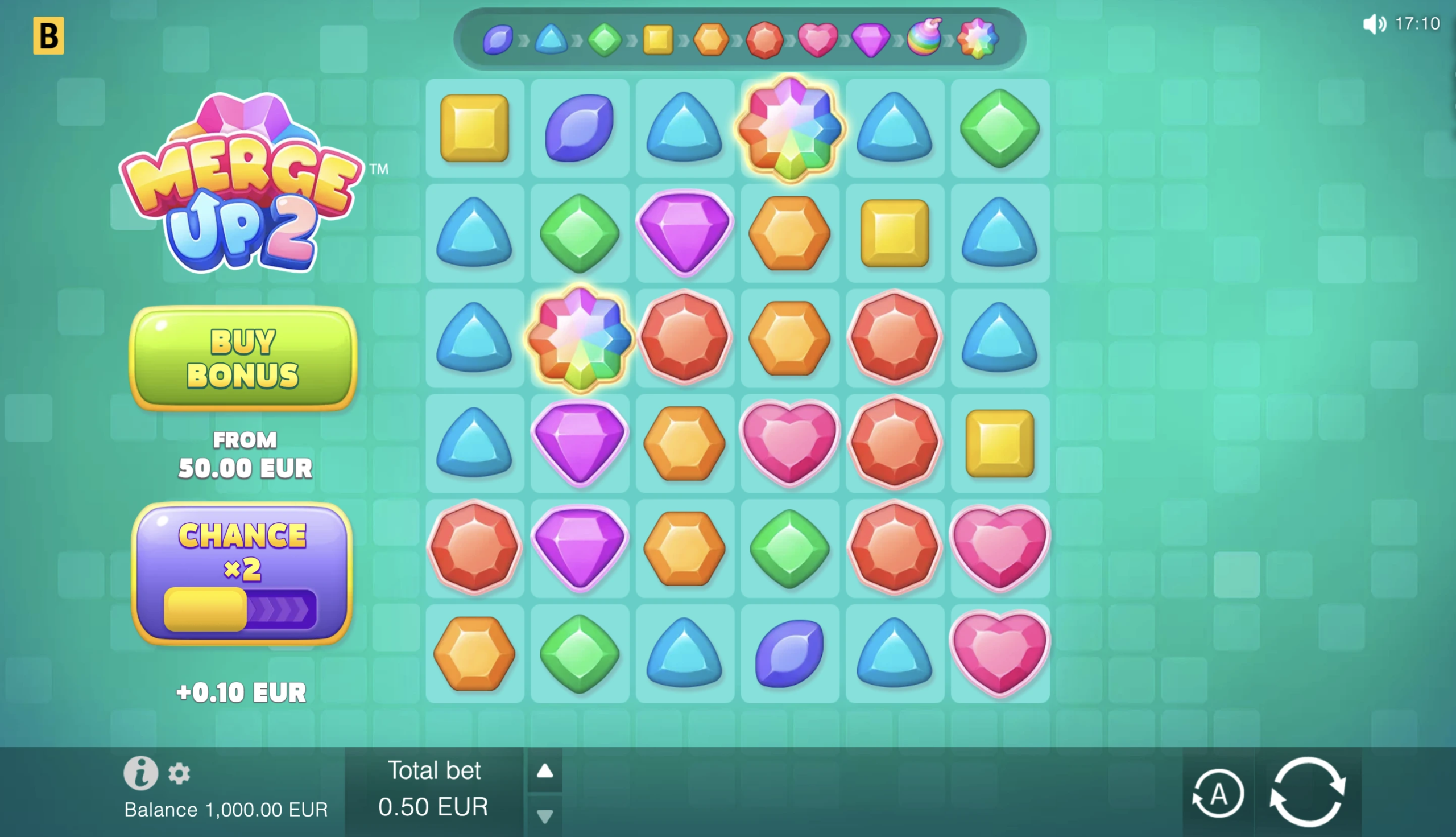 The Merge Up™ 2 game offers you a chance to win the maximum multiplier of x10,000 of your bet. The slot’s gameplay mechanics serve the unique Merge Up™ feature and Cell Multipliers, creating substantial big win potential.