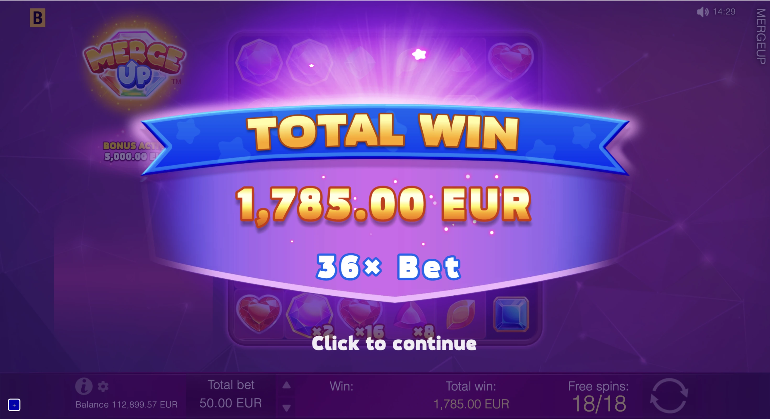 Merge Up™ offers players the chance to get a maximum multiplier of x5,000 of their bet. The slot’s gameplay mechanics bring out a unique Merge up feature and Cell Multipliers, leading to substantial big wins.