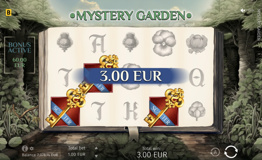 Stop and smell the flowers! Spin these low reels to reveal floral secrets, collect golden Scatter keys, and unlock the door to the Free Spins greenhouse. Once inside, gather winning combinations of beautiful blooms and intricate initials, locking them inside wooden frames for extra payouts and gentle thrills until free spins run out. Unwind in the secluded and peaceful green world of the Mystery Garden!
