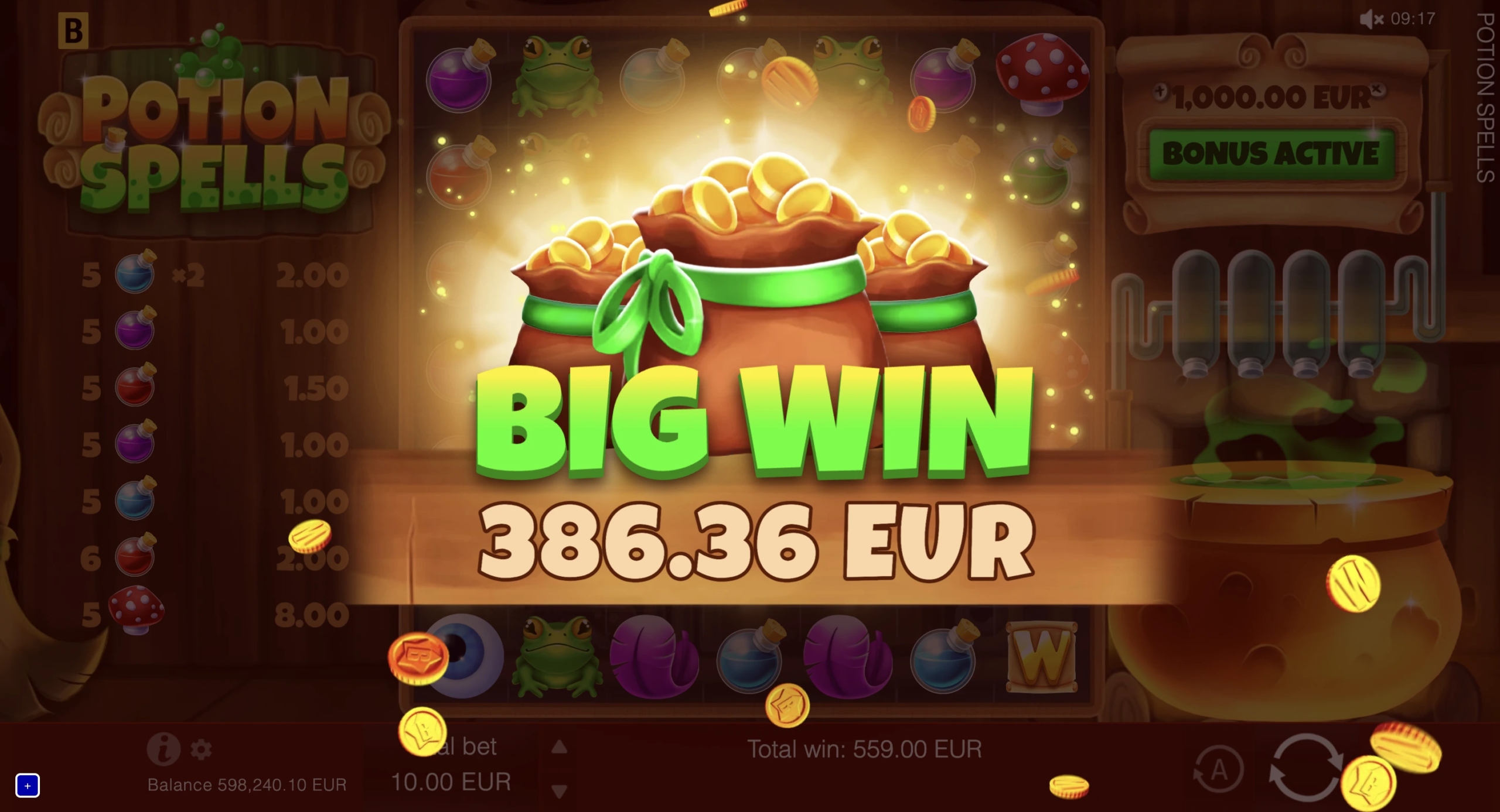 Potion Spells offers players the chance to win substantial rewards, with the biggest win available being up to 12,000 times your stake. This significant winning potential makes it an exciting choice for players seeking thrilling gameplay and high payouts.