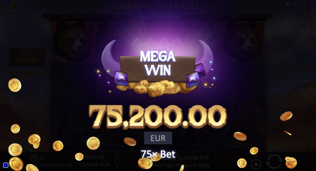 Savage Buffalo Spirit offers a maximum payout of up to 4,684 times your bet, making it one of the most rewarding slots in the BGaming portfolio for those seeking significant wins.