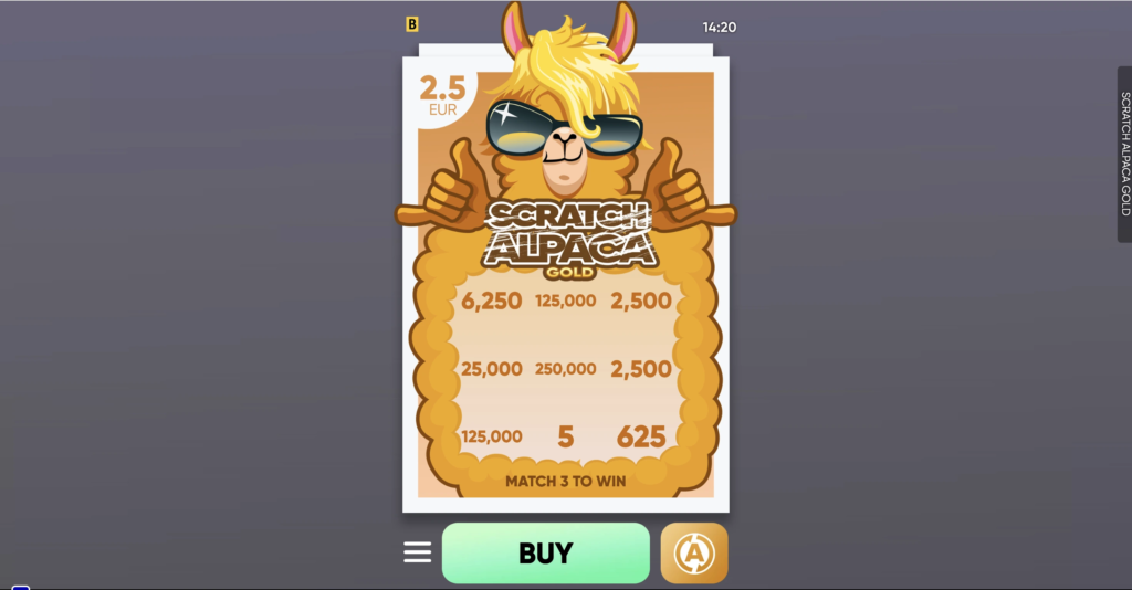 Scratch Alpaca is a collection of instant-win games where the rules involve scratching off nine cells on the playing card to reveal hidden values. Do you have what it takes to secure the biggest win?