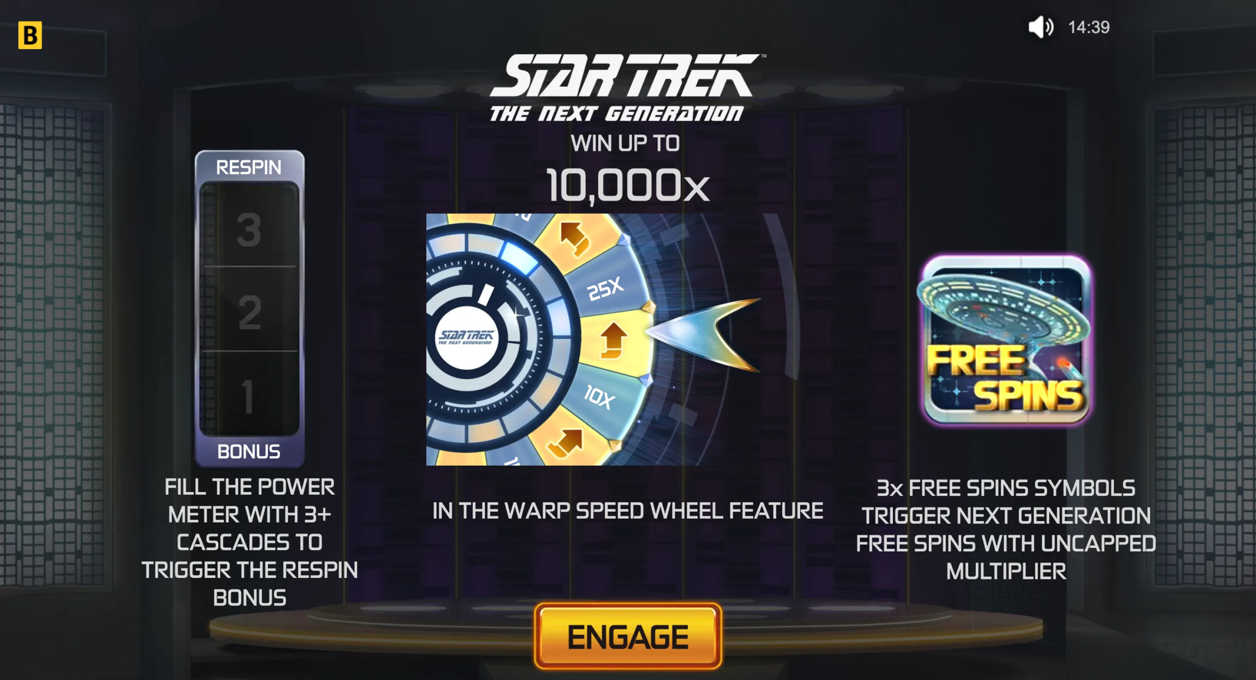 Star Trek™: The Next Generation welcomes eager ensigns aboard the USS Enterprise-D, where Captain Picard leads the renowned, diverse crew on a discovery adventure everyone dreams of being part of! The cascading momentum of the 5×5 reels comes with unexpected refills, a Power Meter to keep your spinning activities in check, a Respin Bonus that may unlock the unique 3-level Warp Speed Wheel, and 4 Free Spins missions of different volatilities. Starfleet Academy graduates of all interests and playing styles are welcome!