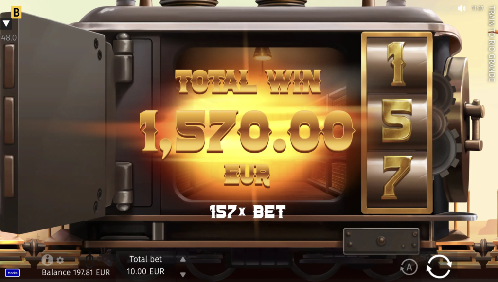 Lucky players can be rewarded with jackpot-like payouts in Train to Rio Grande, which offers a max multiplier of up to x10,490 of the stake.