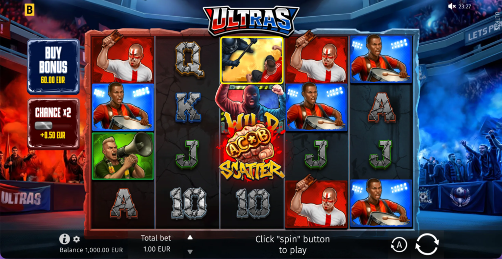 How far would you go to support your football team? The stadium is alive with red and blue flares as the ultras face off and the game intensifies. In BGaming’s Ultras game, players spin through max-intensity soccer visuals as rival fans battle in the stands, while Expanding Wilds boost wins and the Hold and Win Bonus tracks progress with stars. The fans are watching. Show them how it’s done!