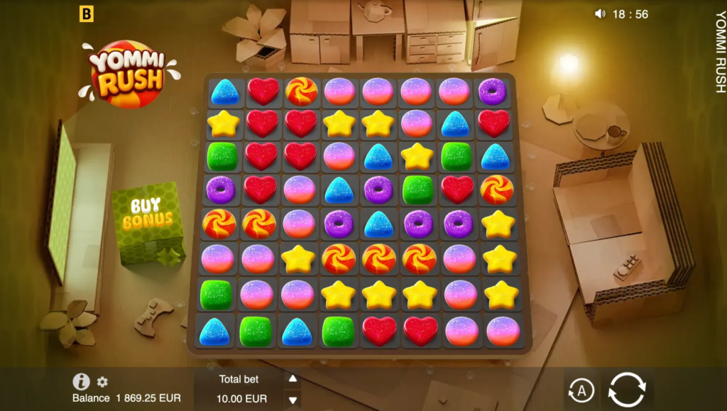 Moving into a new place can be stressful, but not when Yommi is there to accompany you! Some call him an alien, others a friendly house spirit, but everyone agrees that he’s here to bring you comfort. You feed him candy, and he shares his multipliers with you, ultimately reinventing your home in the reassuring 12 Free Spins game. Settle in and make friends with Yommi!