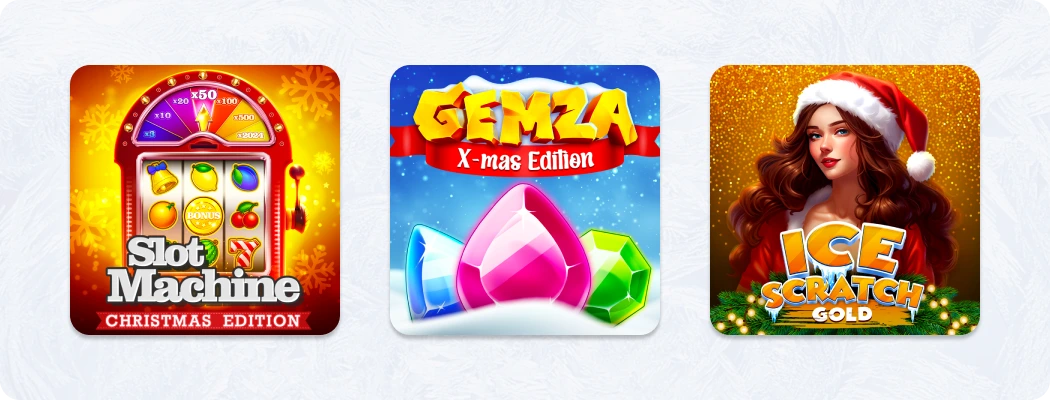 In this holiday-themed casual, a lovable lady dressed as Santa holds the scratch cards for you, and the protective card layer is covered in ice! Test your luck the festive way with the demo.