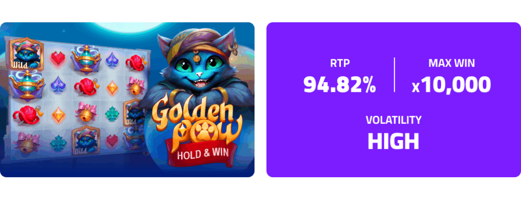 Calling all cat-curious players! This BGaming slot demo is for you. Golden Paw Hold and Win combines charming feline characters and Arabic folklore flair for an enchanting finish.