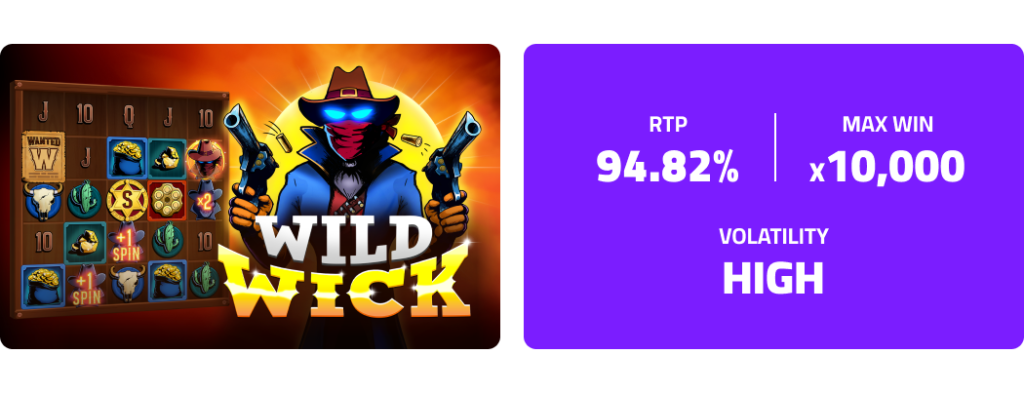 Swap the winter weather for the dusty streets of the Wild West with this bold 5×5 reel slot from BGaming and Strmlytics, where high volatility meets shoot-em fun. With interactive mechanics designed for risk-takers, Wild Wick fires up engaging gameplay with Free Spins and keeps players on the edge of their seats.
