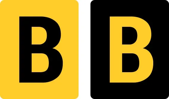 O principal ícone da marca da BGaming é a letra B na placa amarela. Versão invertida do símbolo é letra amarela B na placa preta.