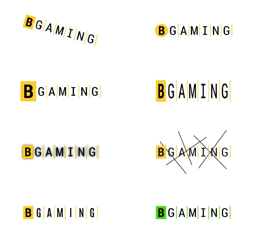 O principal ativo da marca é o logotipo da BGaming, estilizado como as células da máquina caça-níqueis.